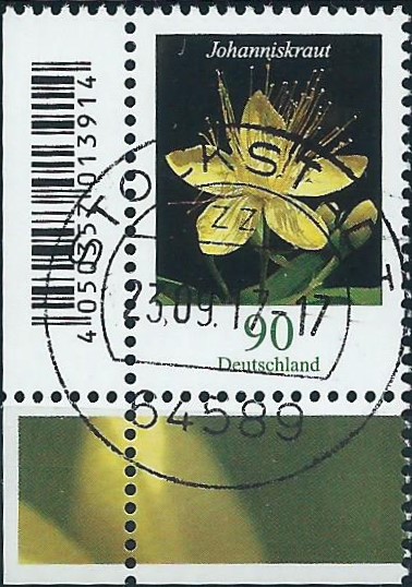 Das Johanniskraut ist der nächste Wert in der Runde, 90 Cent weist er aus. Er stammt aus der linken unteren Bogenecke mit Stempel Stockstadt vom 23.9.17: