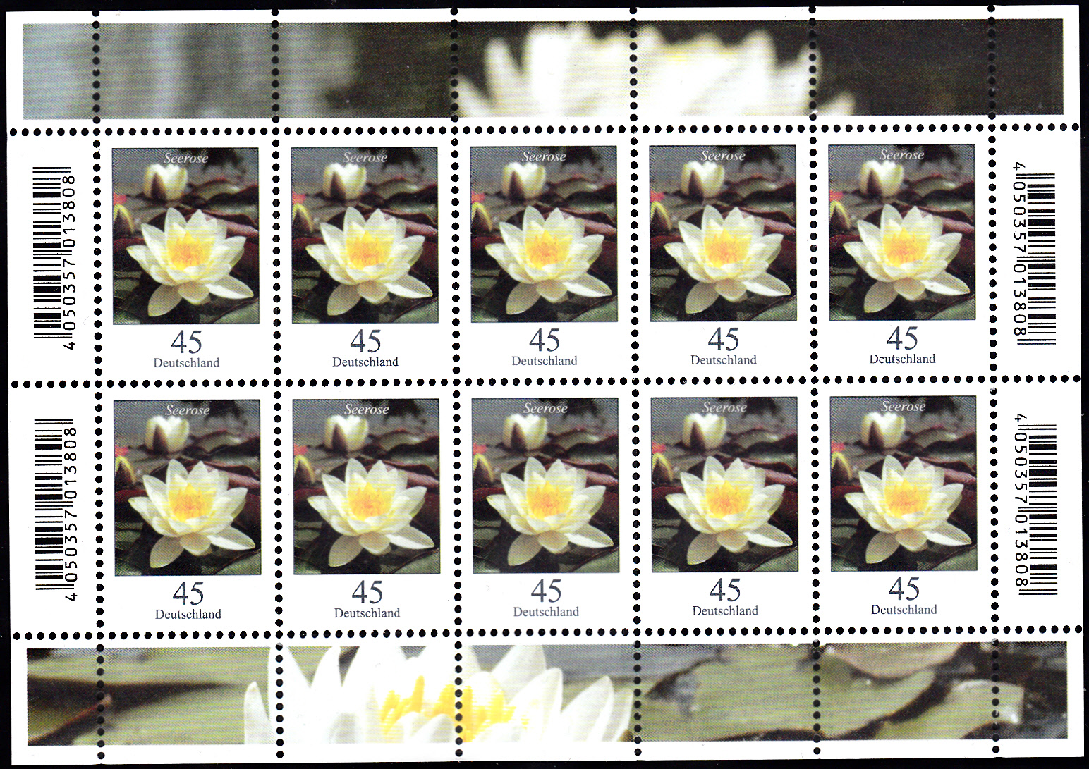 Am 11.5.1017 erschien eine Marke zu 45 Cent aus der Serie "Blumen" mit dem Motiv "Seerose" (MiNr 3303).