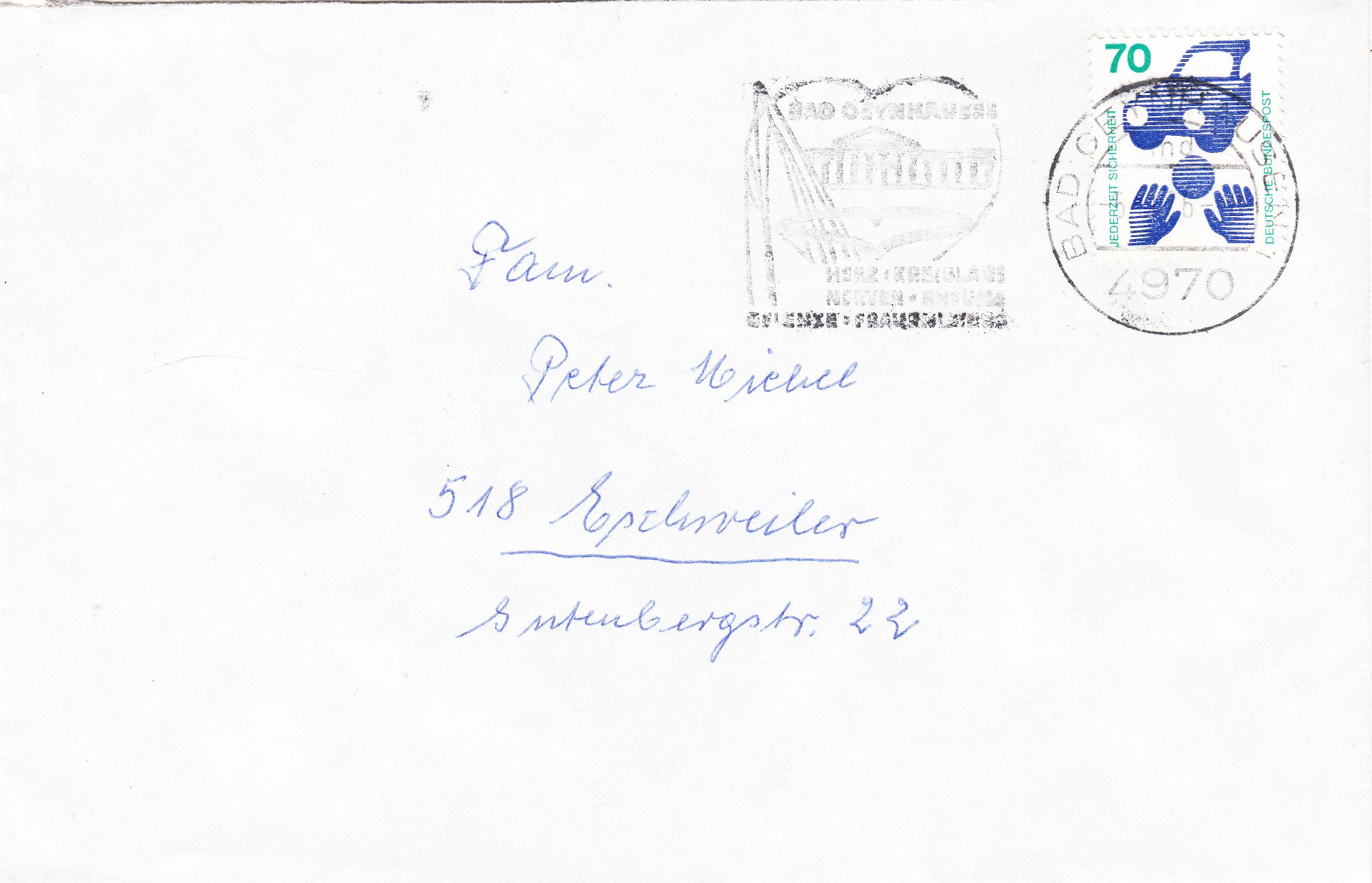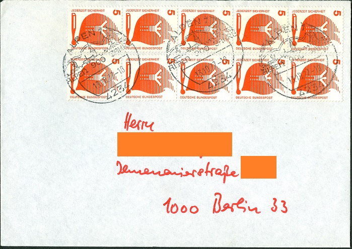 Ein Standardbrief im Fernverkehr kostete nur 50 Pfennig Porto. Für die hier verklebten 70 Pfennig habe ich beim besten Willen keine andere Erklärung als "Überfrankatur aus Markenmangel" = der Absender hatte gerade kein anderes Postwertzeichen zur Hand!???