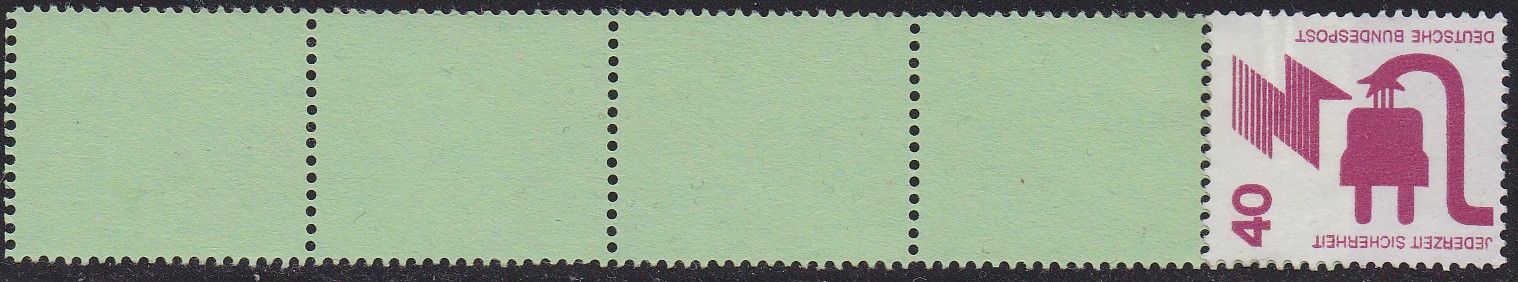 40Pf-Wert DS Unfallverhütung als Rollende mit einer Marke + vier Leerfelder in grün (MiNr 699 A R RE 1+4Lf) postfrisch.