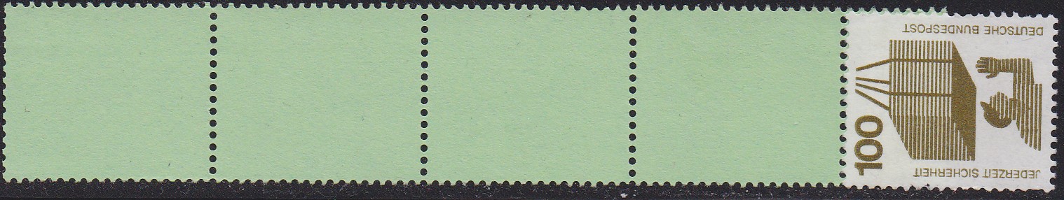 100Pf-Wert DS Unfallverhütung als Rollende mit einer Marke + vier Leerfelder in grün (MiNr 702 R RE 1+4 Lf) postfrisch.