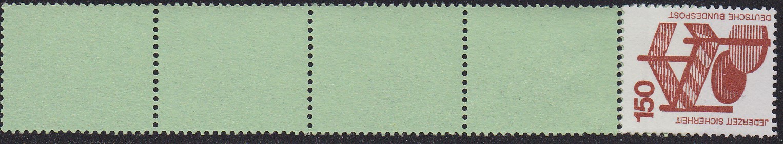 150Pf-Wert DS Unfallverhütung als Rollende mit einer Marke + vier Leerfelder in grün (MiNr 703 R RE 1+4 Lf) postfrisch.