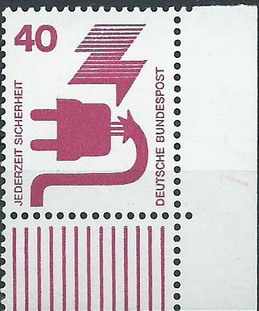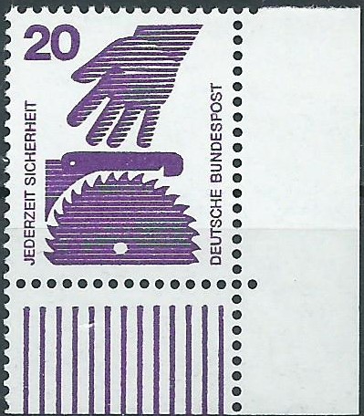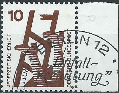 Der nächste Wert, hier zu 100 Pf, war eigentlich das Objekt meiner Begierde aus diesem Posten. Er ist ebenfalls vom rechten Seitenrand mit Ersttagssonderstempel und hat als Besonderheit oben noch das Druckerzeichen 7 im Rand!