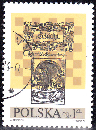 Zum 10. Internationales Schachfestival in Lublin ist diese Marke (MiNr 2322) erschienen. Sie zeigt die Abbildung "Schachspiel" nach einem Holzschnitt (16. Jh.) und die Titelseite der gleichnamigen Dichtung von Jan Kochanowski (1530-1584).