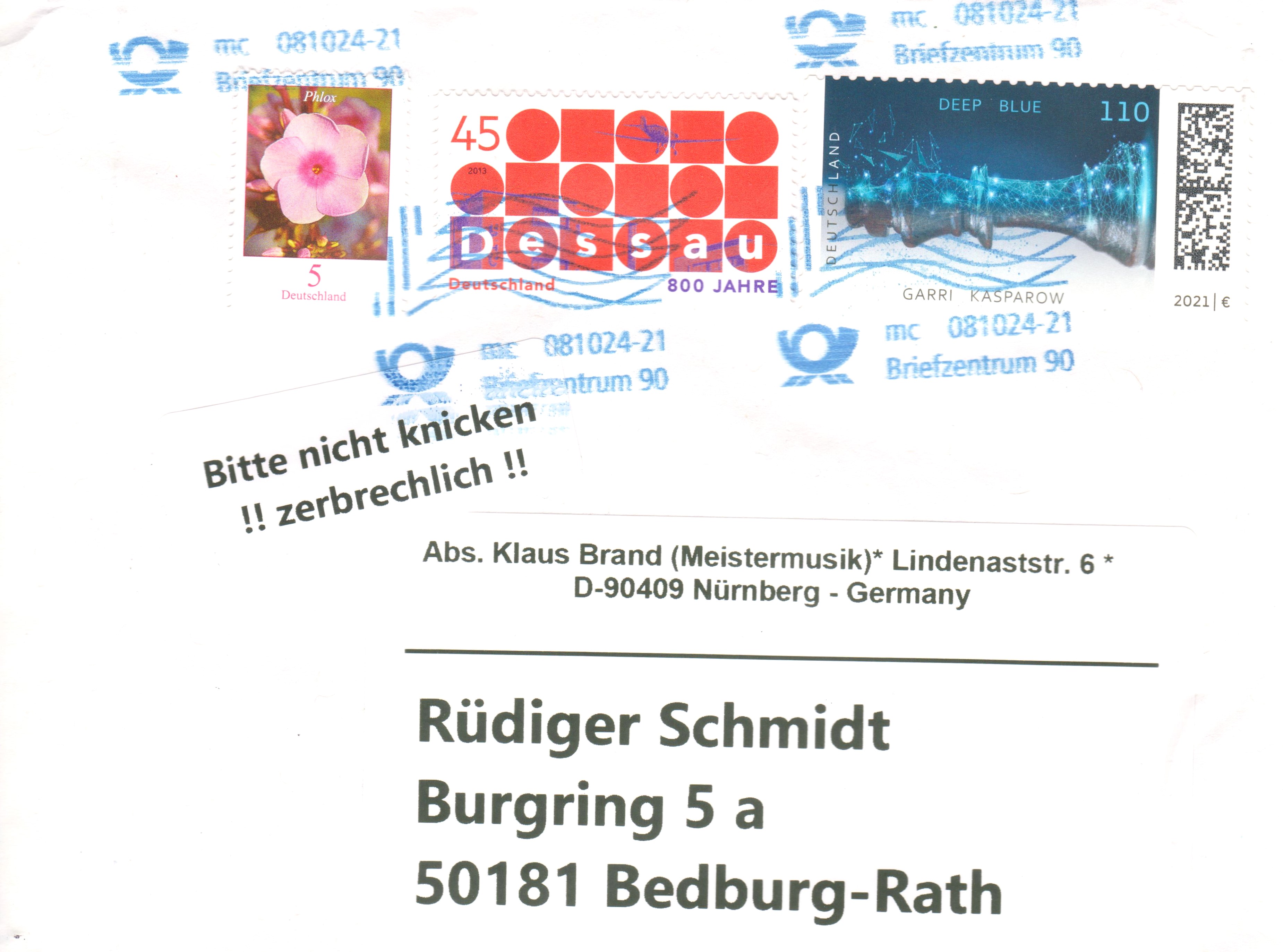 Am 2.11.2021 ist eine bildgleiche selbstklebende Marke (MiNr 3641) in einem Folienblatt und als Einzelmarke aus Folienbogen erschienen.