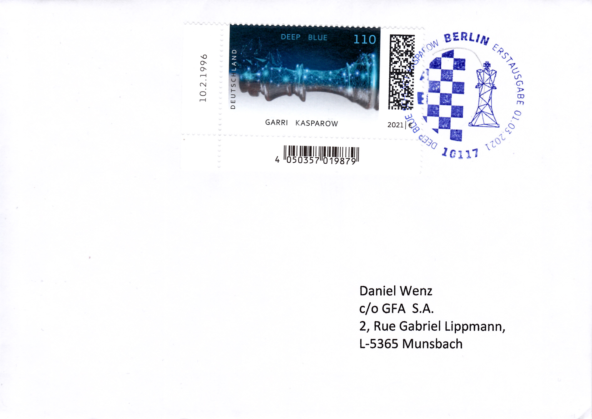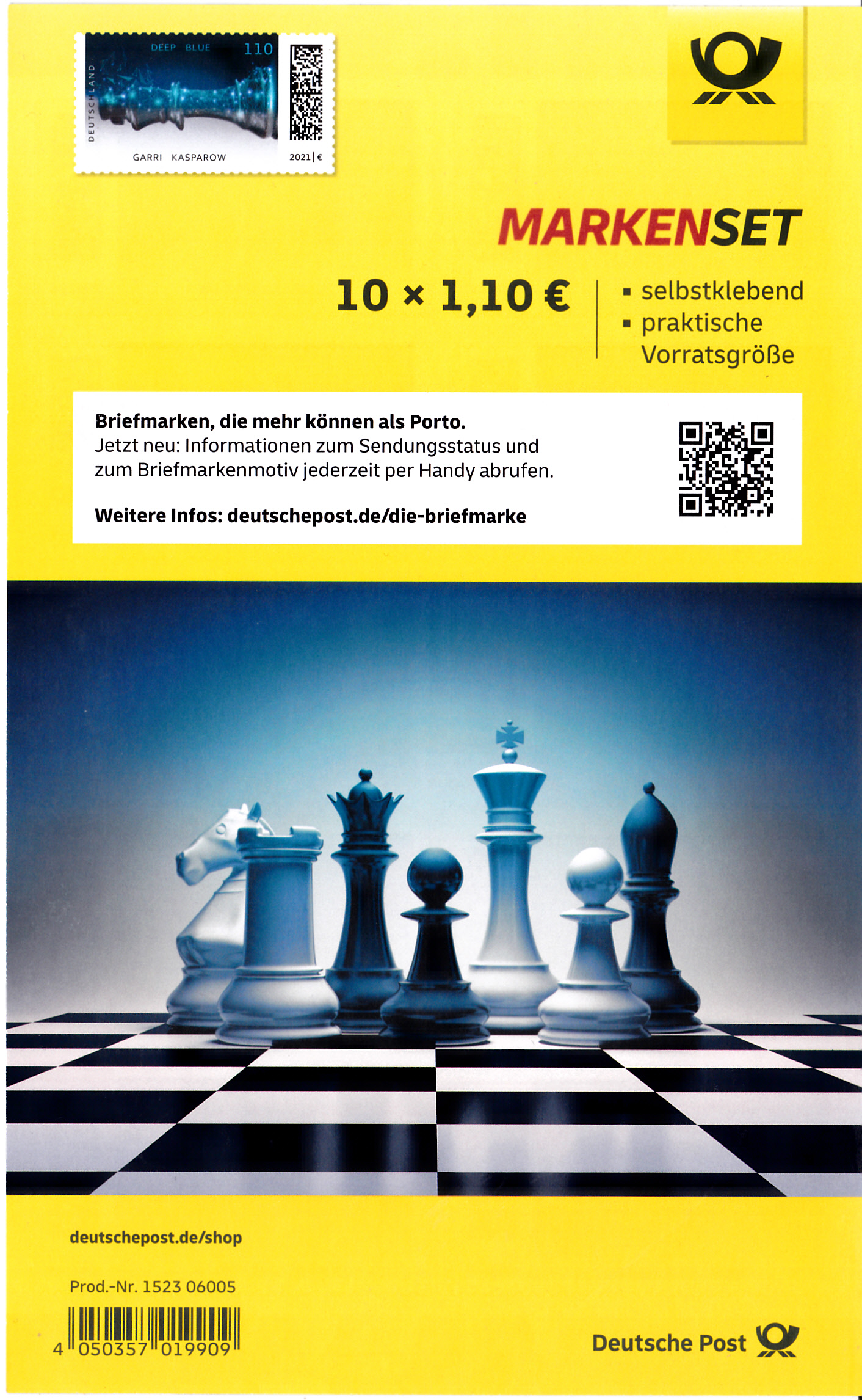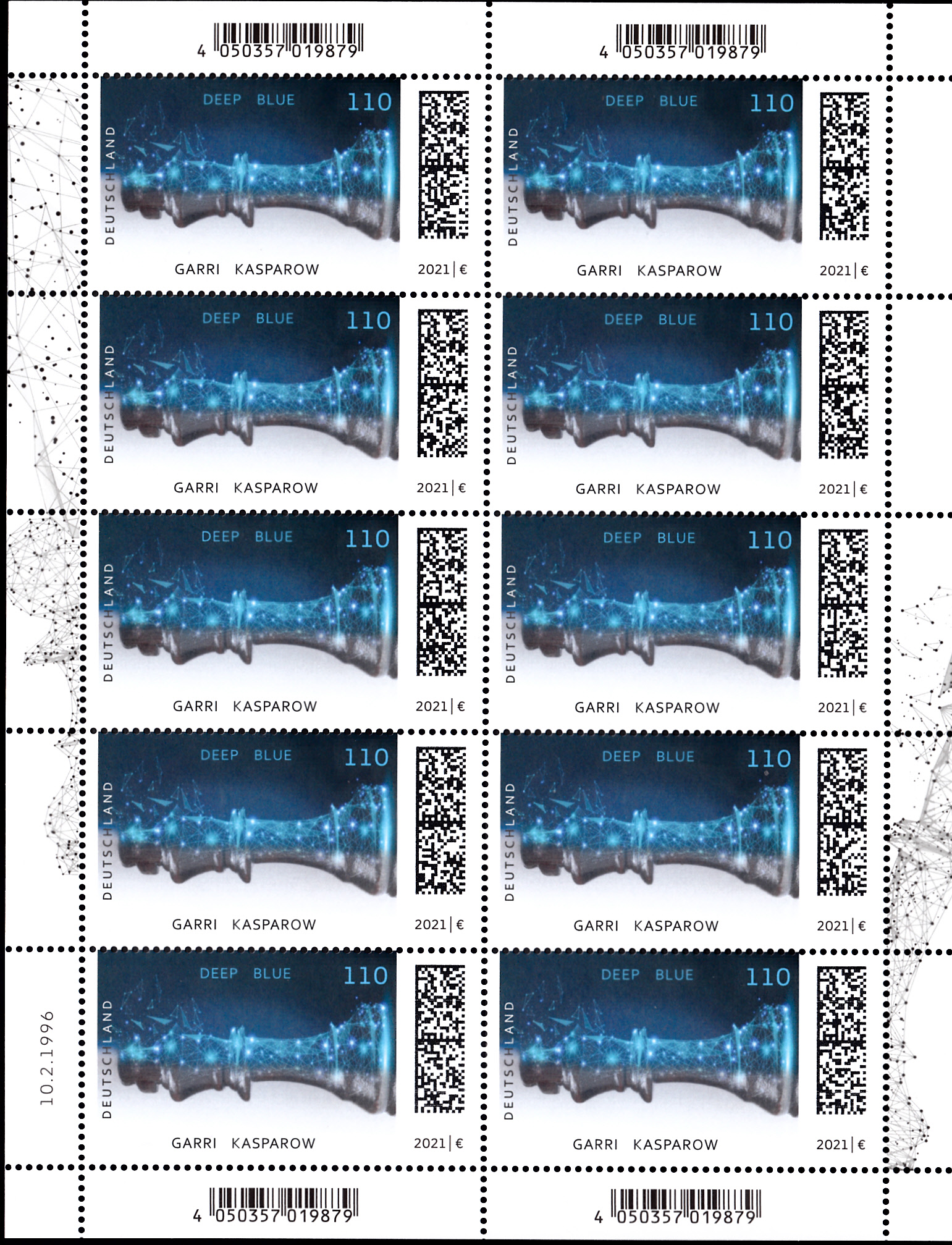 Bei der Deutschen Post ist 2021 eine Marke (MiNr 3595) zu "Schachcomputer Deep Blue schlägt Weltmeister Garri Kasparow". Sie zeigt einen geschlagenen König in physischer und digitaler Gestalt.