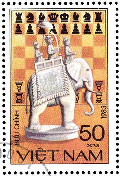 Diese Marke (MiNr 1338) aus dem Kleinbogen aus Vietnam bildet eine weitere Schachfigur aus Indien ab.