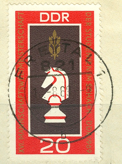 Diese Marke war eine von 3 Werten die am 29. Juli 1969 an die Postschalter kam und war der Schach-Mannschaftsweltmeisterschaft der Studenten, Austragungsort war Dresden, gewidtmet.. Nominal entsprach das dem Tarif eines Standardbriefes.