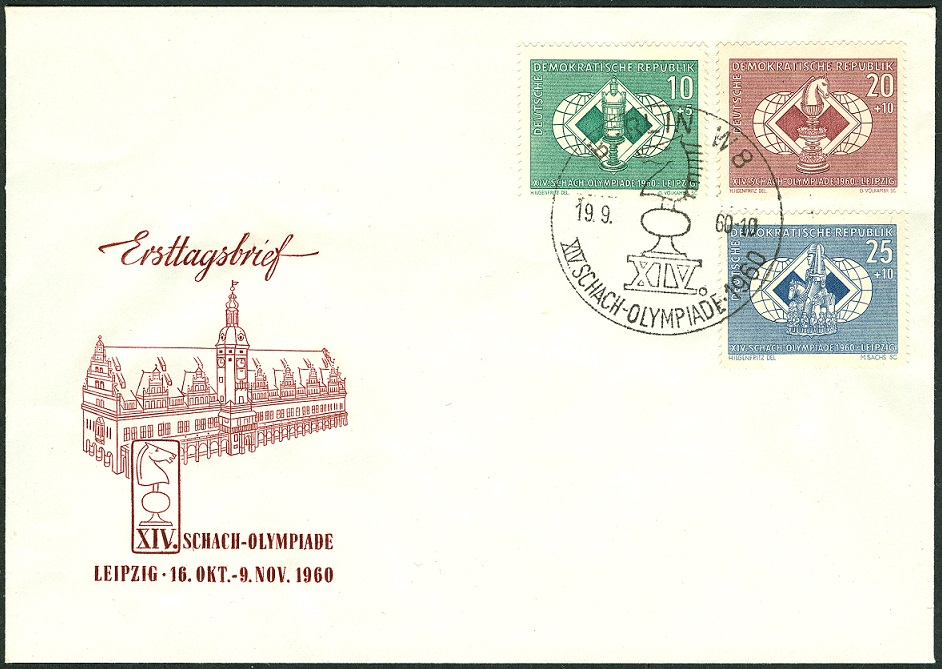 Anlässlich der XIV. Schach-Olympiade in Leipzig (16.10. - 9.11.1960) brachte die Postverwaltung der ehemaligen DDR eine 3wertige Ausgabe heraus. Der Höchstwert (25 Pfennig + 10 Pfennig, DDR-Währung) der drei Zuschlagswerte war ein so genannter "Sperrwert".
