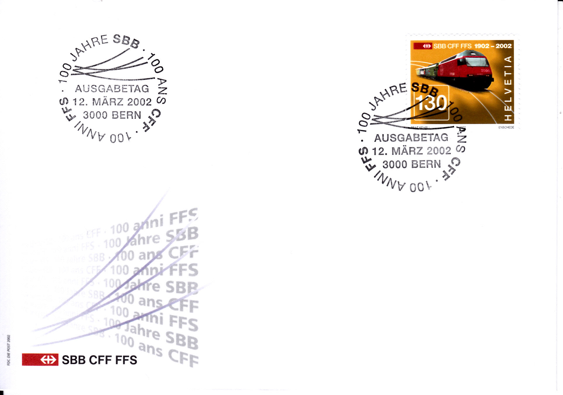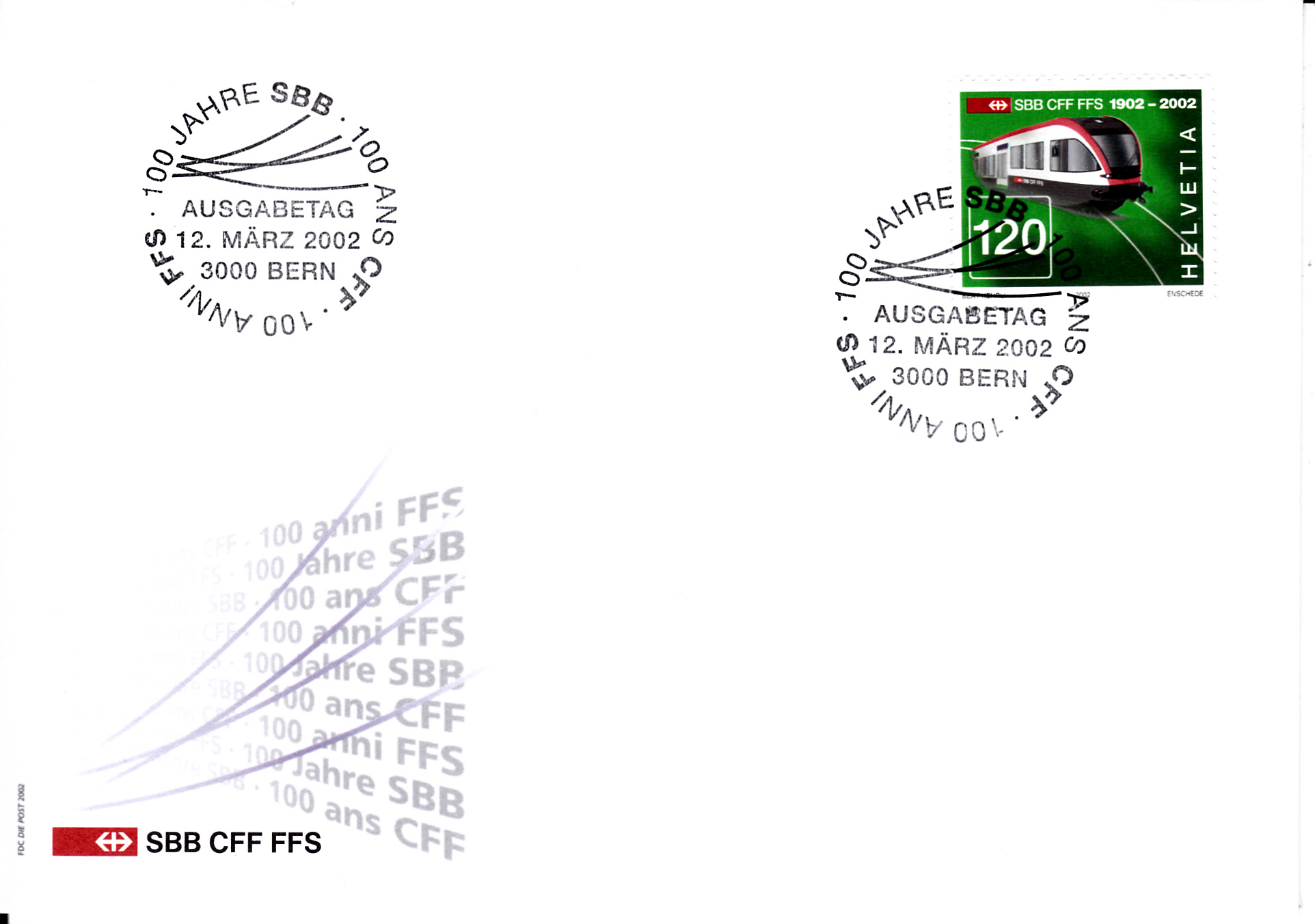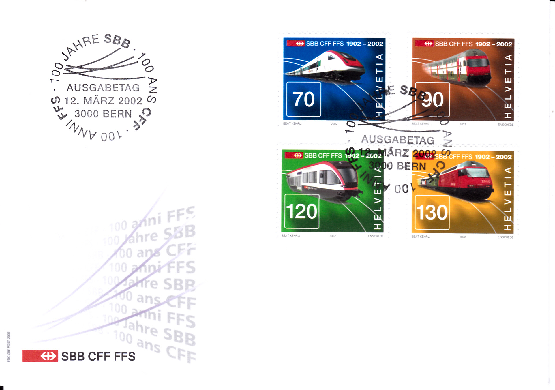 Es folgt auch noch ein FDC der Schweizer Post mit allen vier Marken der Serie "100 Jahre Schweizer Bundesbahn SBB".