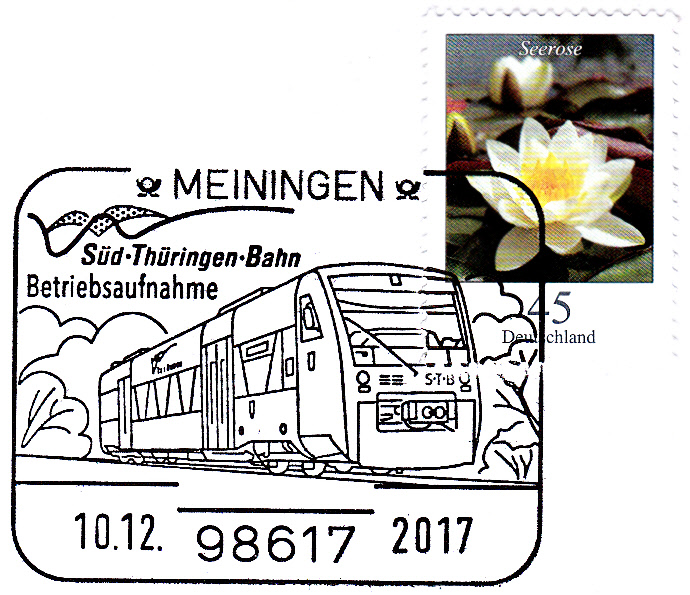 In diesem Sonderstempel vom 15.9.2017 aus Göppingen wird der "Gläserne Zug" gezeigt.