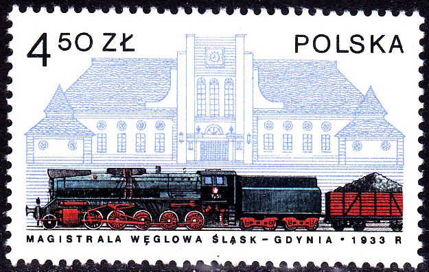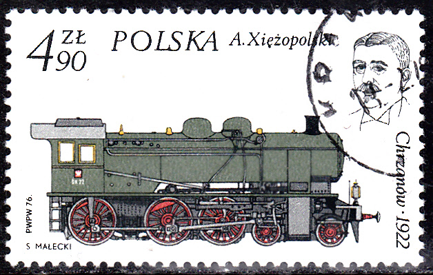 Auf einer weiteren Marke aus Polen (MiNr 2434) ist die Dampflokomotive OK 22 (1928-1934) abgebildet. Sie wurde von Antoni Xiężopolski (geb. 6. Sep. 1861 in Wieliszew bei Warschau; gest. 21. Mai 1951 in Warschau; polnischer Ingenieur) konstruiert.
