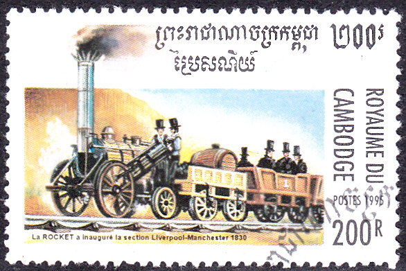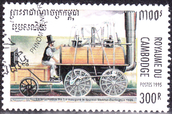 In einer Serie "Historische Dampflokomotiven" ist in Kambodscha diese Marke (MiNr 1525) mit der Locomotion No. 1 erschienen.