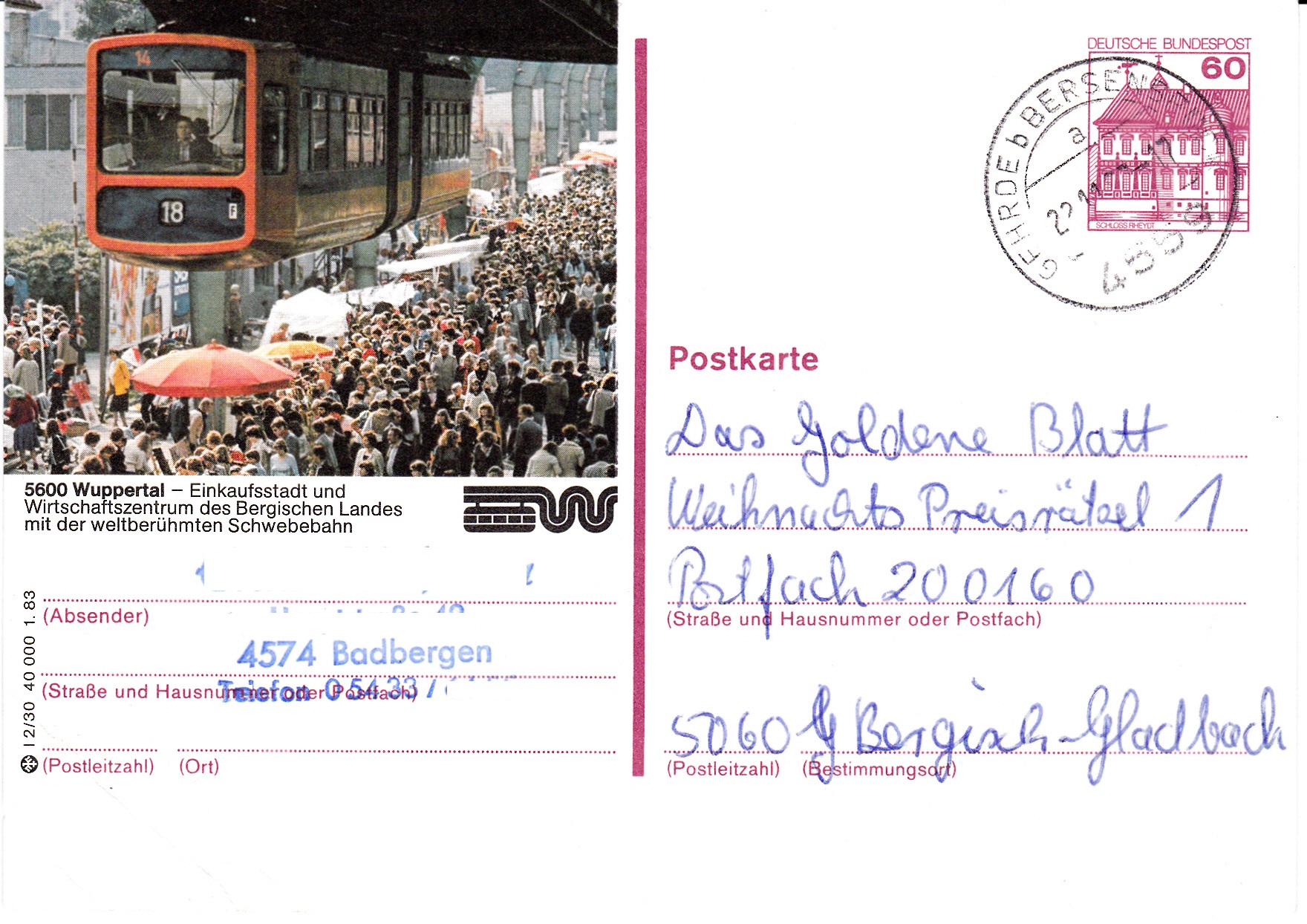 Einerseits ist es schade, dass jemand auf diesem Beleg vorderseitig mit Kugelschreiber vermerkt hat "1.-Tagsstempel", andererseits hat dieser ansonsten recht unscheinbare Beleg aber vermutlich gerade deshalb bis heute überlebt und ich kann ihn Euch somit hier vorstellen!