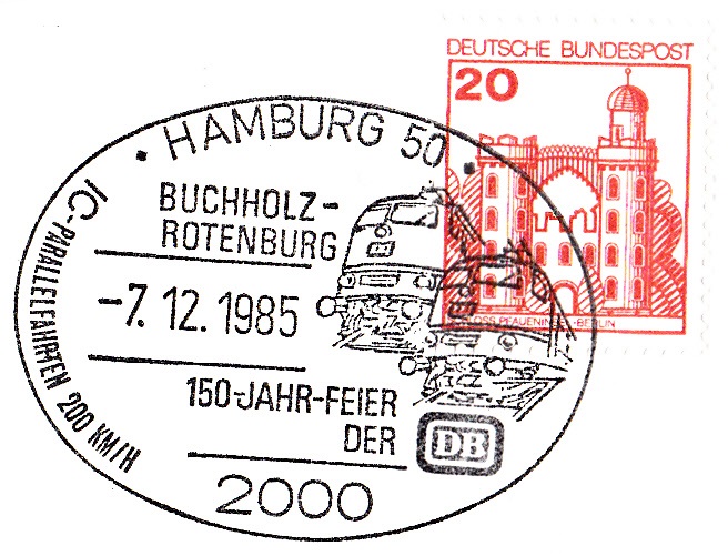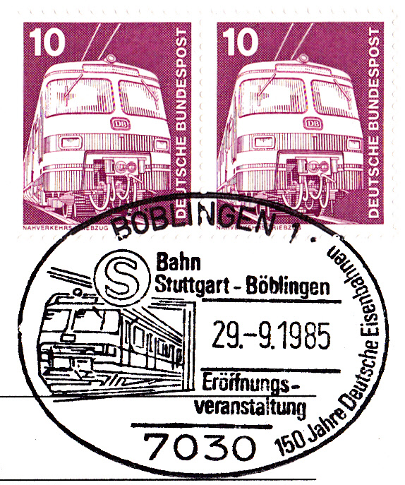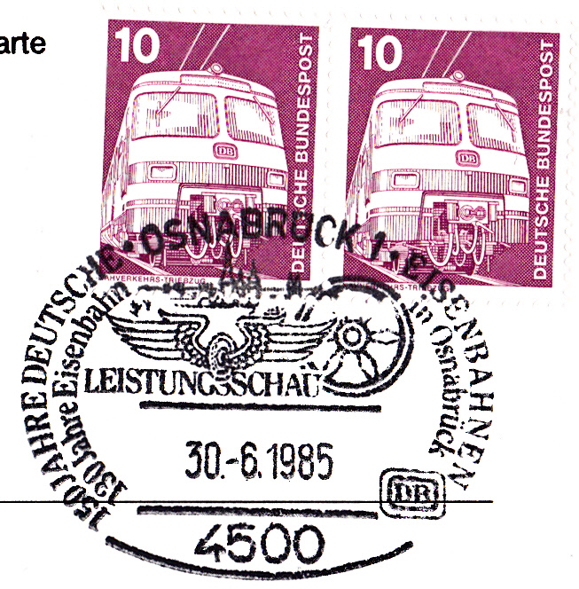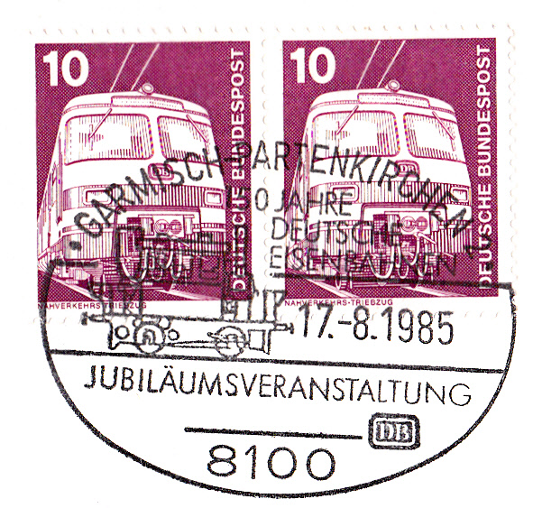 Im Sonderstempel vom 29.6.1985 aus Dillingen zu "150 Jahre Deutsche Eisenbahn" und "125 Jahre Saarstrecke" wurde im Stempel die gleiche Abbildung gezeigt wie im vorigen Stempel aus Saarbrücken.