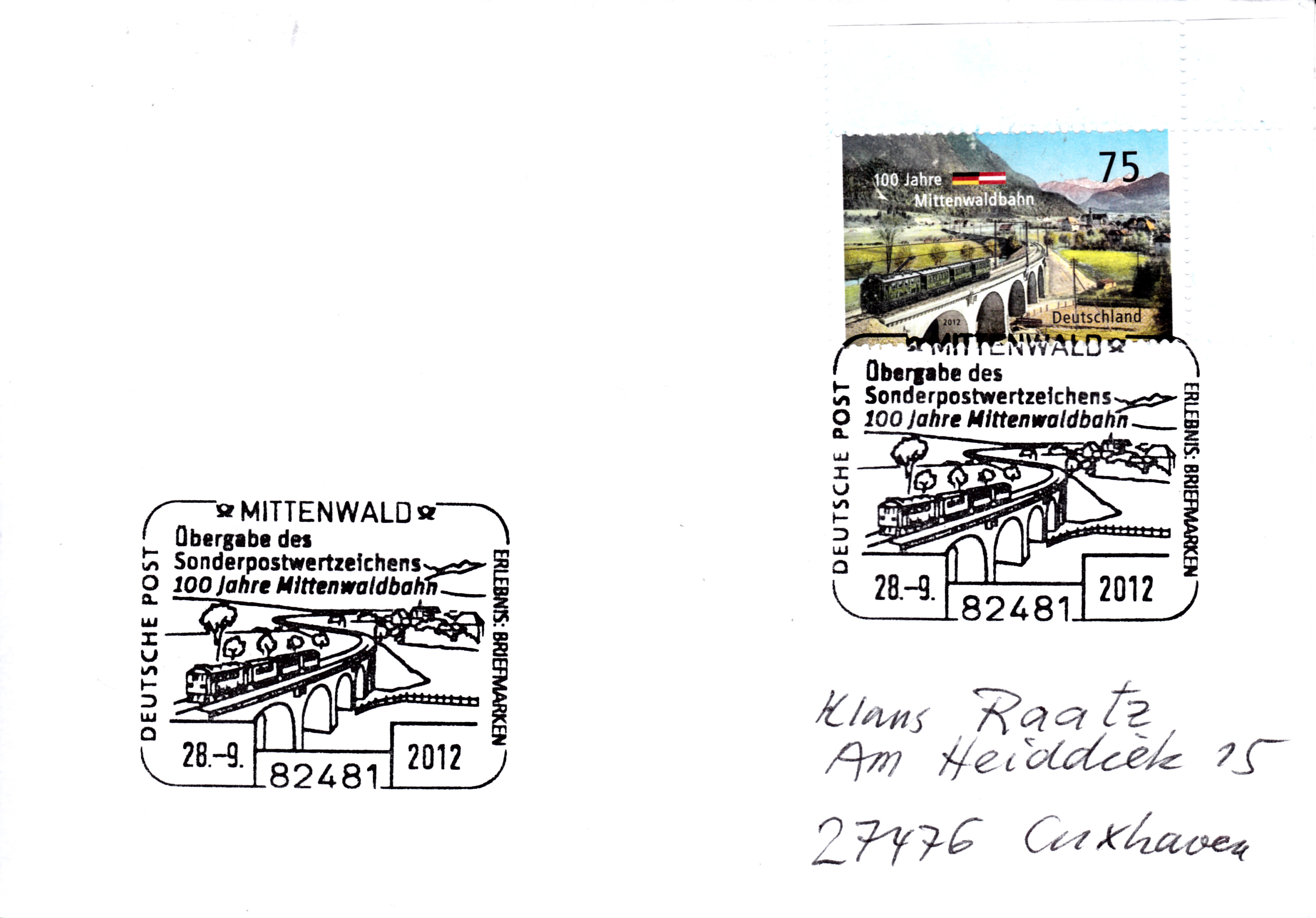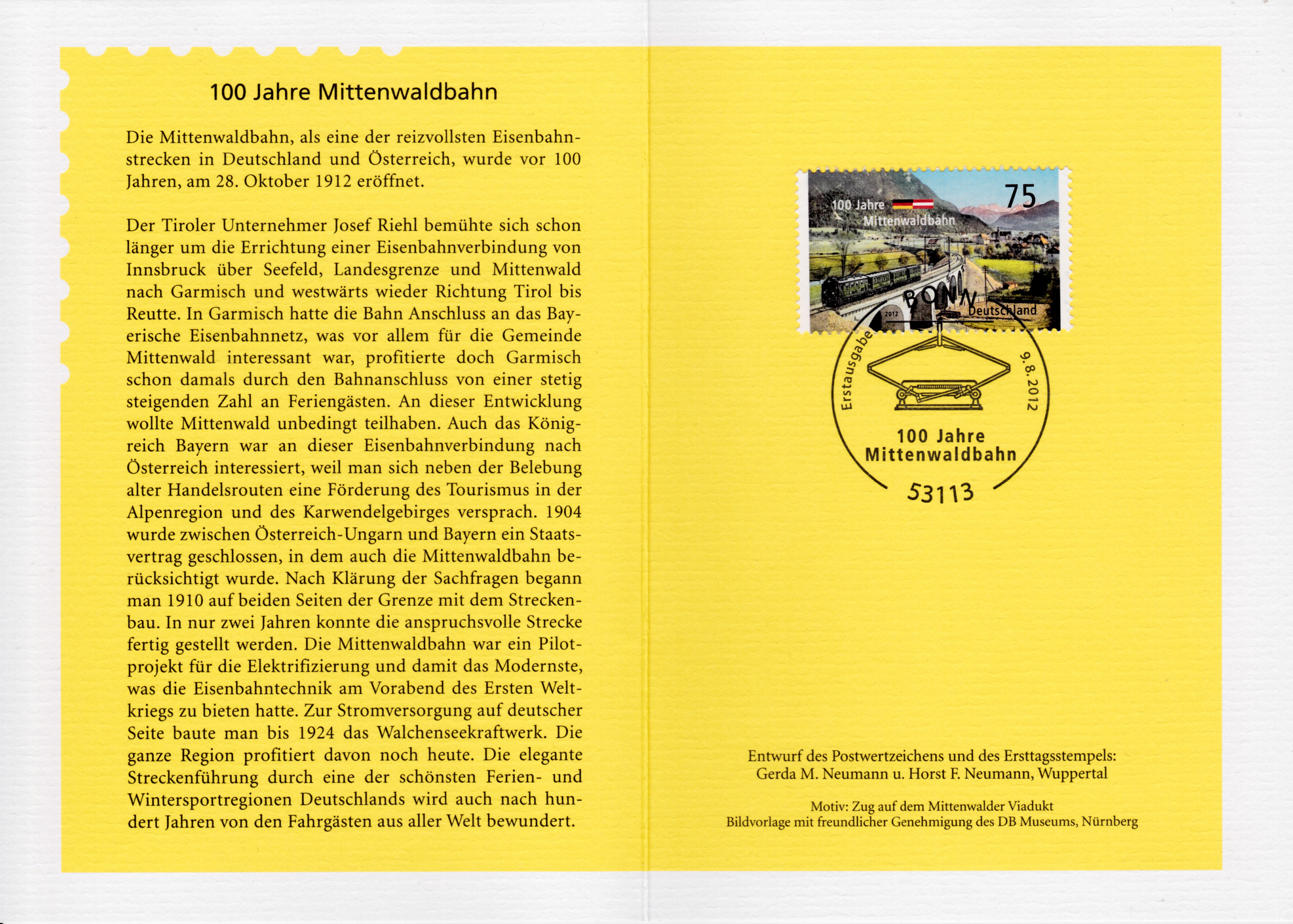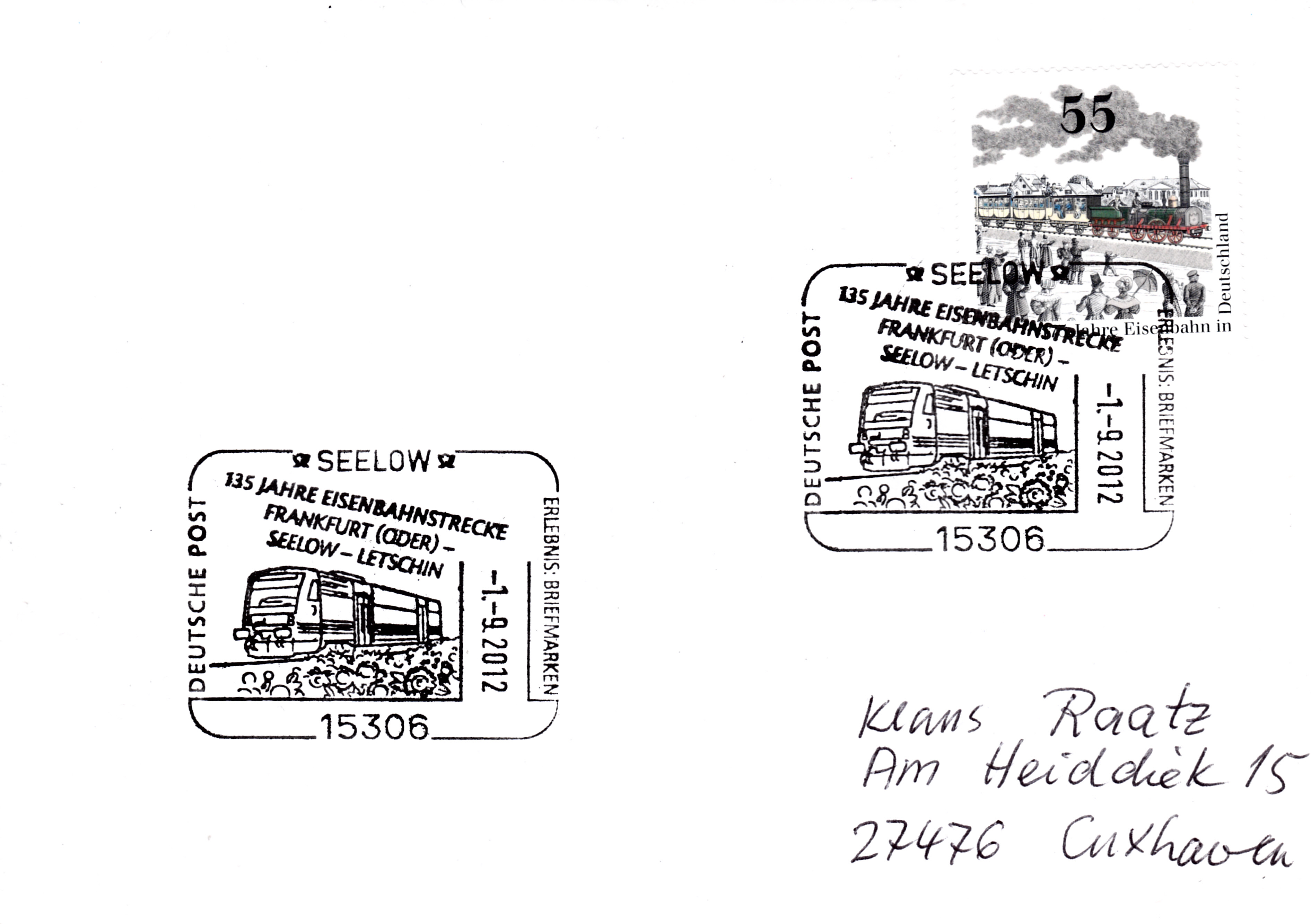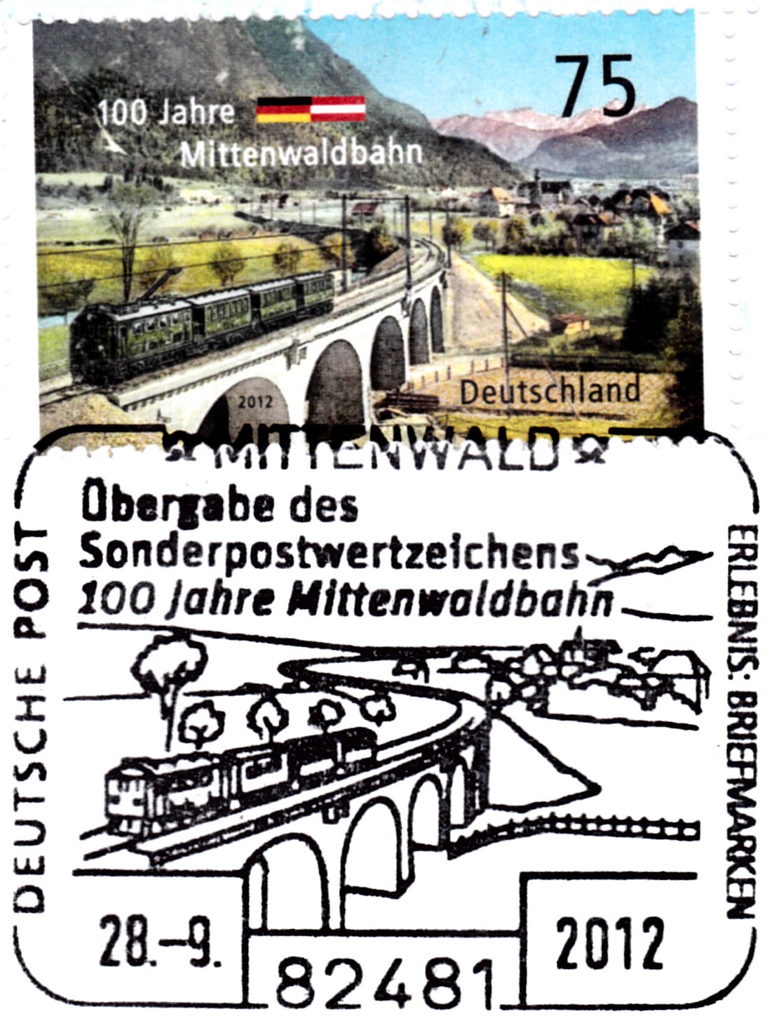 Dieser Sonderstempel aus Limburg vom 3.10.2012 wurde aus Anlass "150 Jahre Lahntalbahn" eingesetzt.