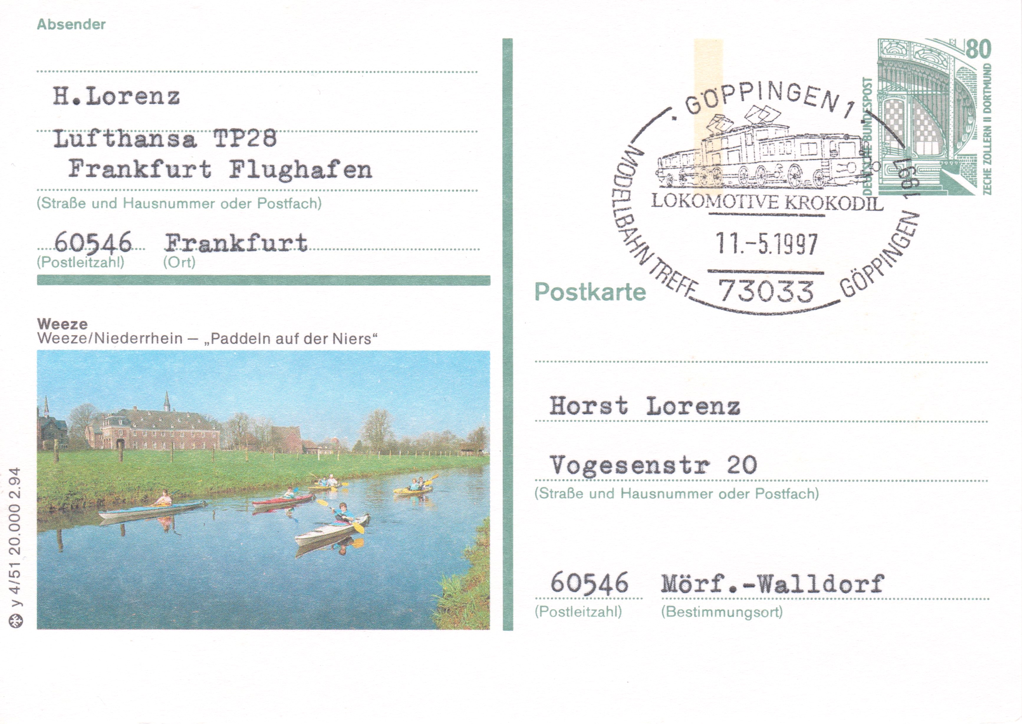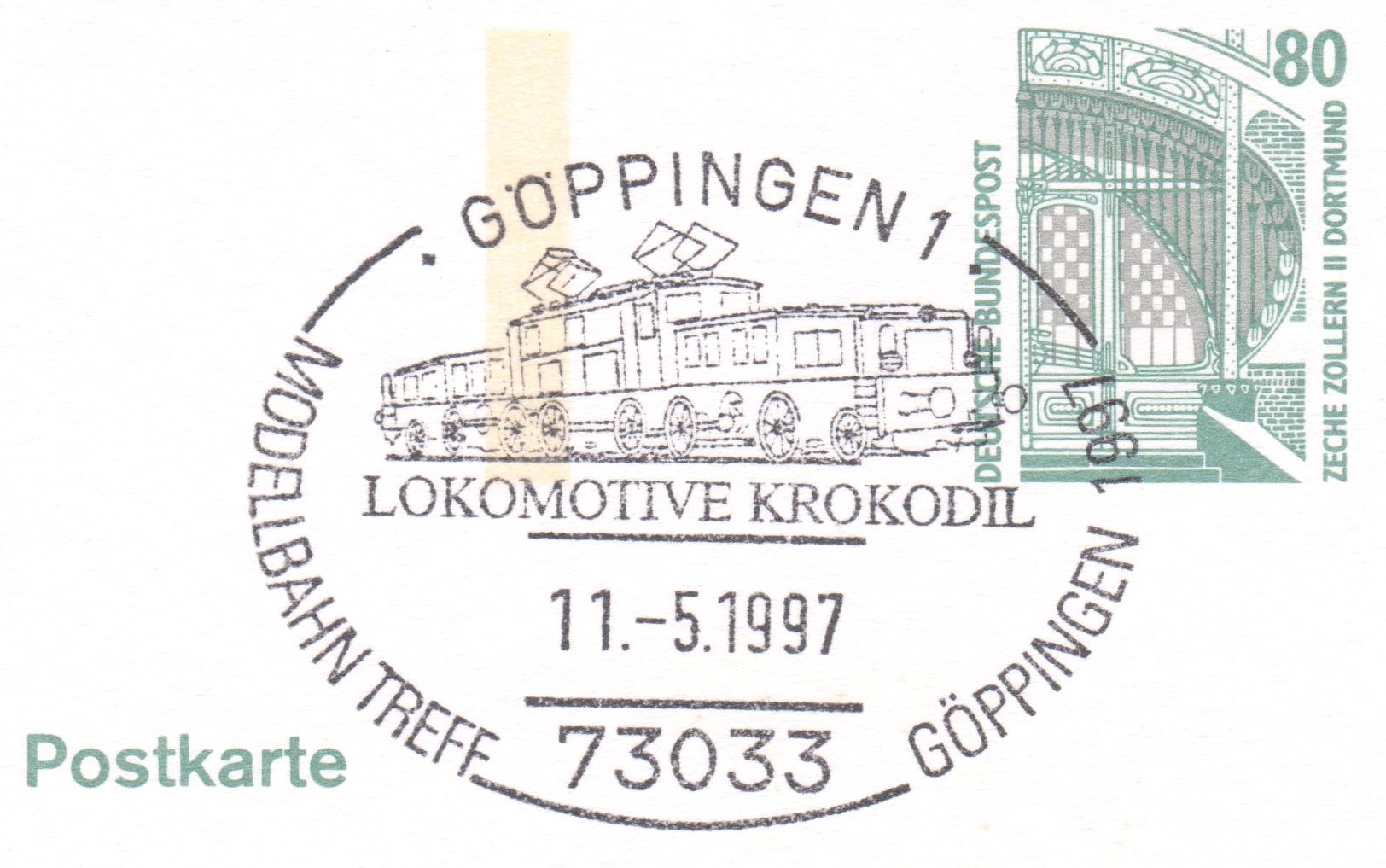 Dieser Sonderstempel aus GÖPPINGEN zeigt als Motiv eine LOKOMOTIVE KROKODIL