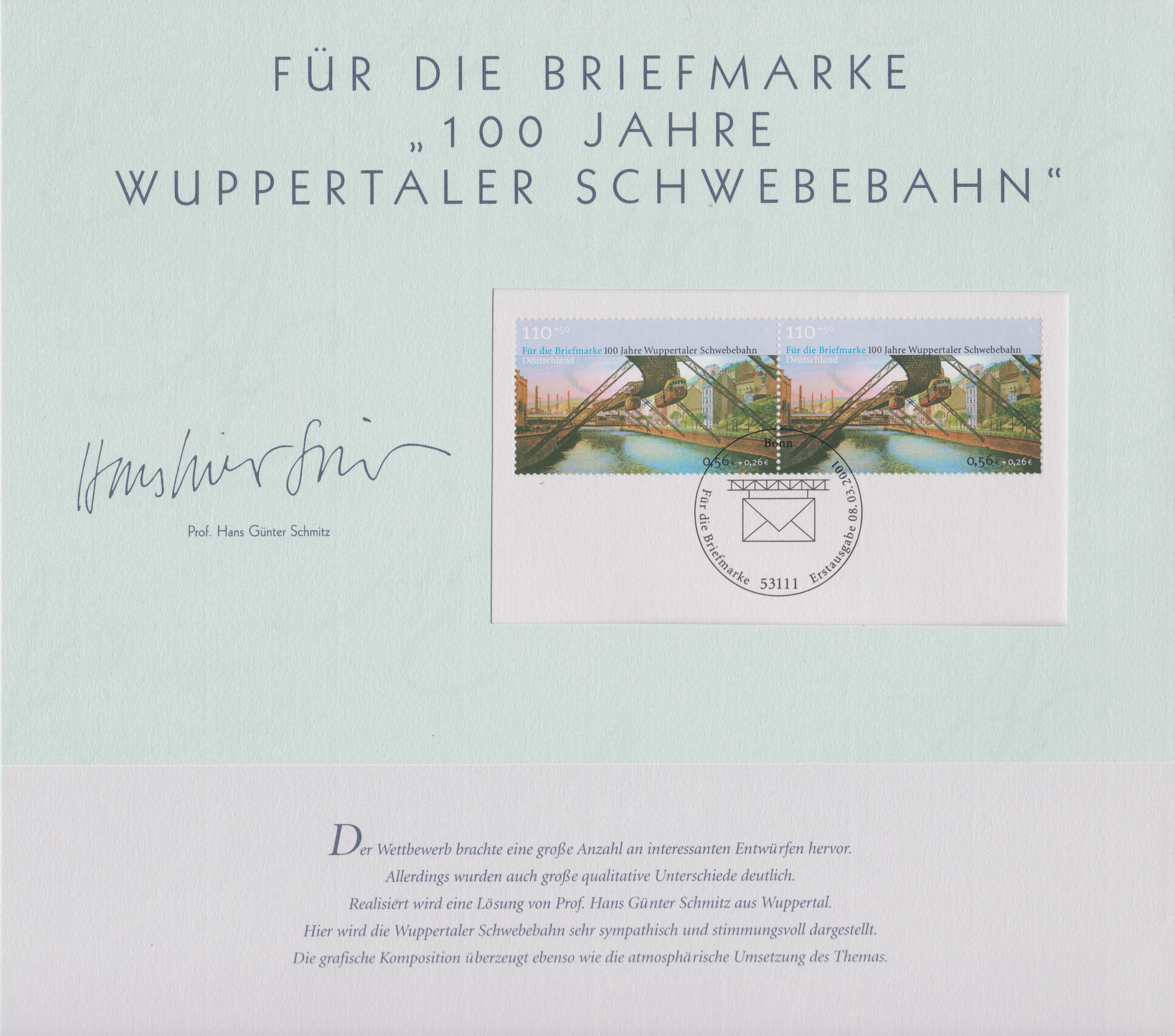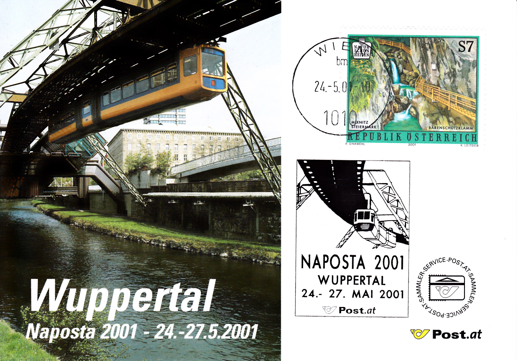 Die Österreichische Post hat zur NAPOSTA 2001 in Wuppertal eine "Ausstellungskarte" angefertigt. Auf der Karte und dem Cachet-Stempel ist die Schwebebahn abgebildet.
