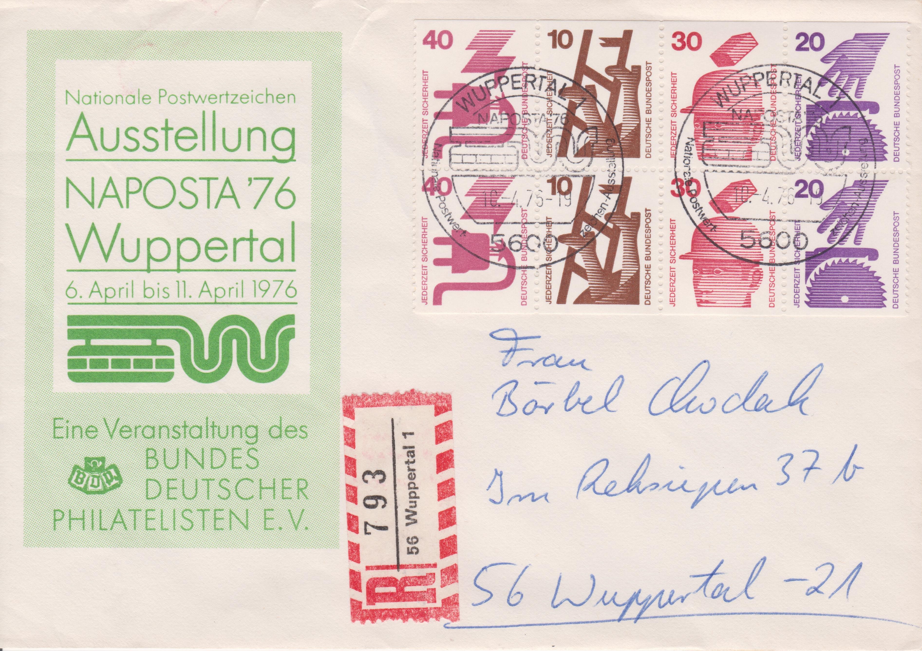 Brief per Einschreiben, aufgegeben am 10.04.1976 während der NAPOSTA ´76 in 5600 WUPPERTAL 1: