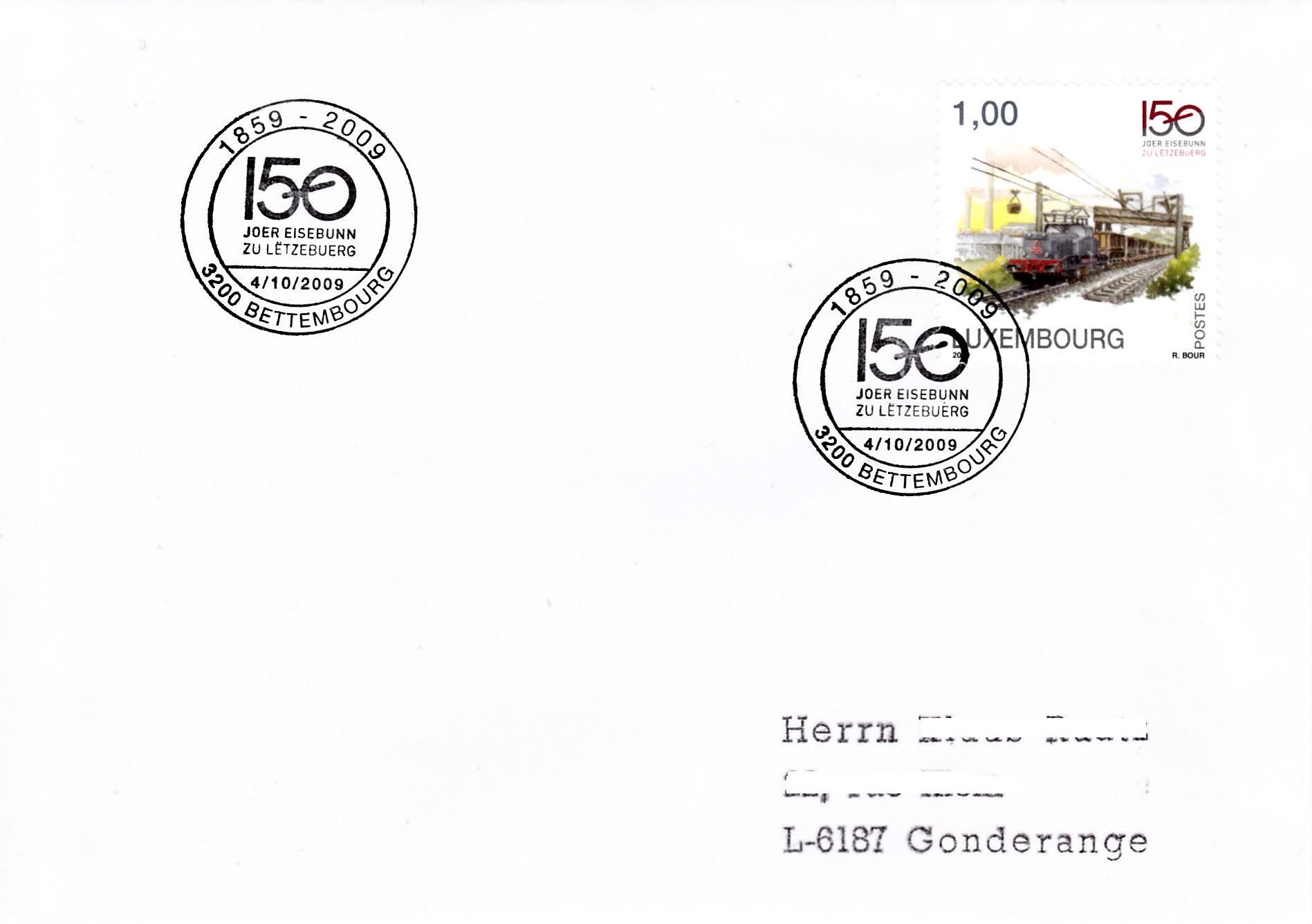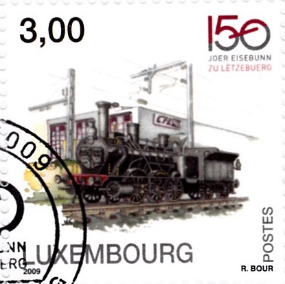 Zum Jubiläum "150 Jahre Eisenbahn in Luxemburg" erschien in Luxemburg eine Markenserie. Auf der Marke zu 0,50€ (MiNr 1838) wird ein Doppelstockpersonenzug gezeigt.