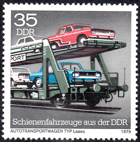 Eine weitere Marke dieser Serie (MiNr 2417) zeigt einen Autotransportwagen Laaes.