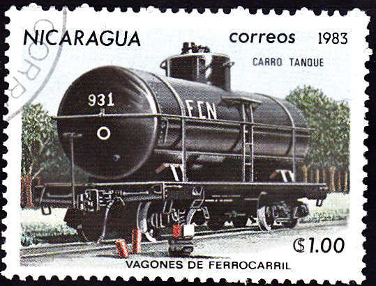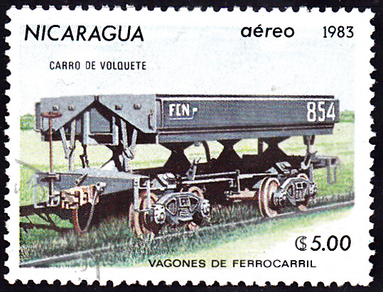1983 erschien in Nicaragua eine Serie mit Eisenbahnwagen. Aus dieser Serie stammt diese Marke (MiNr 2388) mit einem geschlossenen Güterwaggon.