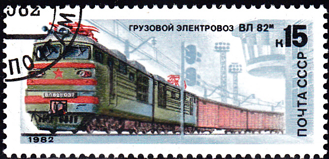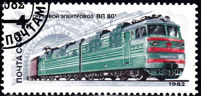 Diese Marke aus einer Serie aus der Sowjetunion (MiNr 5175) mit Abbildungen von Lokomotiven zeigt eine Güterzug-Elektrolokomotive sowjetischen ВЛ80 (VL80)-Reihe. Diese Lokomotiven bestehen aus zwei vierachsigen, permanent gekuppelten, Einheiten. Sie wurden ab 1963 und mit Veränderungen bis zum Jahre 1995 gebaut.
