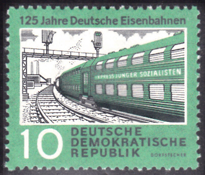In der DDR ist 1960 zum Jubiläum "125 Jahre Deutsche Eisenbahn" eine Markenserie erschienen. Die Marke zu 10Pf (MiNr 804) zeigt den Doppelstock-Gliederzug "Express junger Sozialisten".