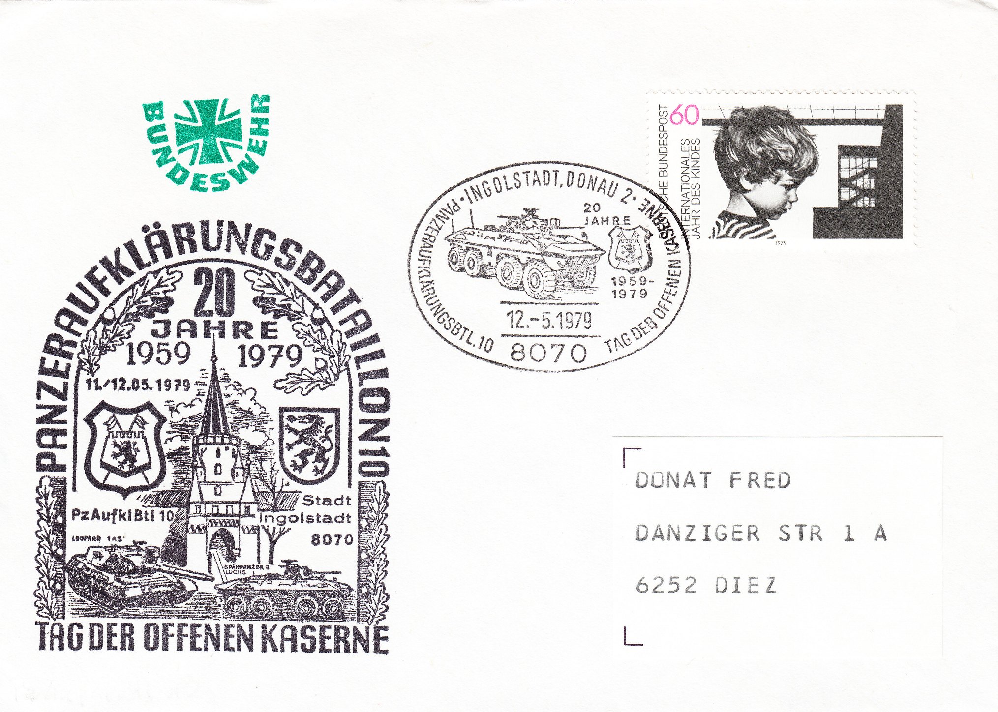 Philatelistisch dokumentiert wurde das Kreuztor in diesem Cachetstempel, der 1979 zum 20jährigen Jubiläum des in Ingolstadt stationierten Panzeraufklärungsbataillons 10 aufgelegt wurde: