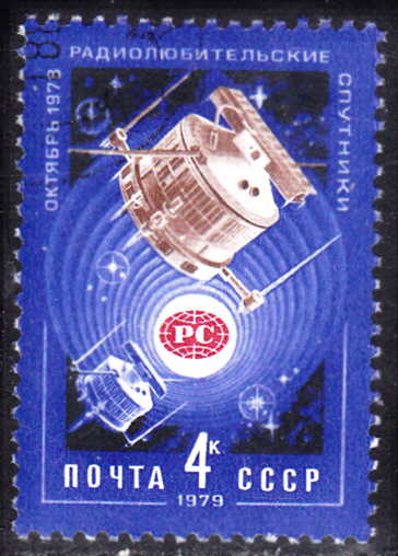 Diese Marke der Sowjetunion (MiNr 4820) ist zum Start der Nachrichtensatelliten "Radio 1" und "Radio 2" erschienen.