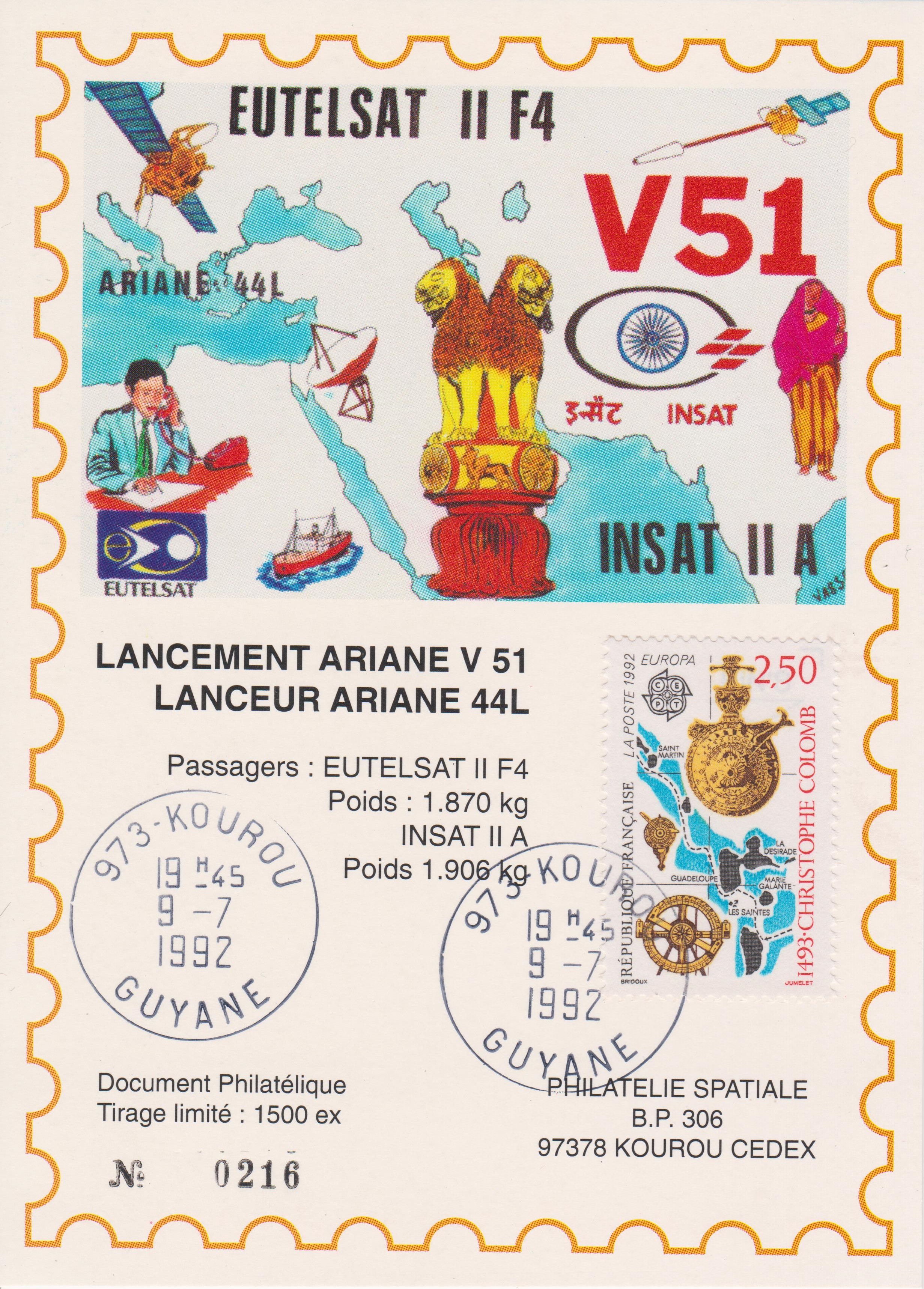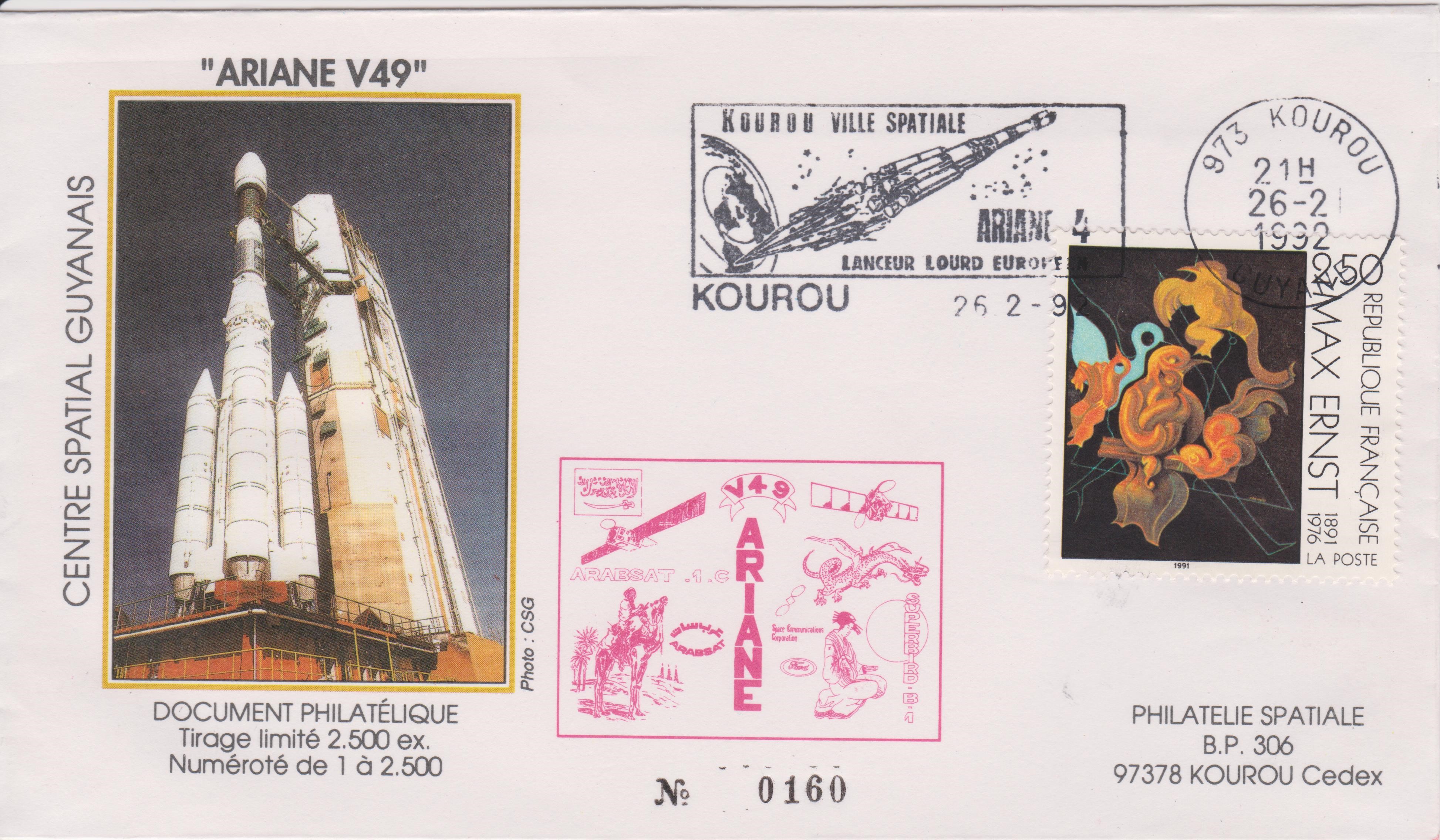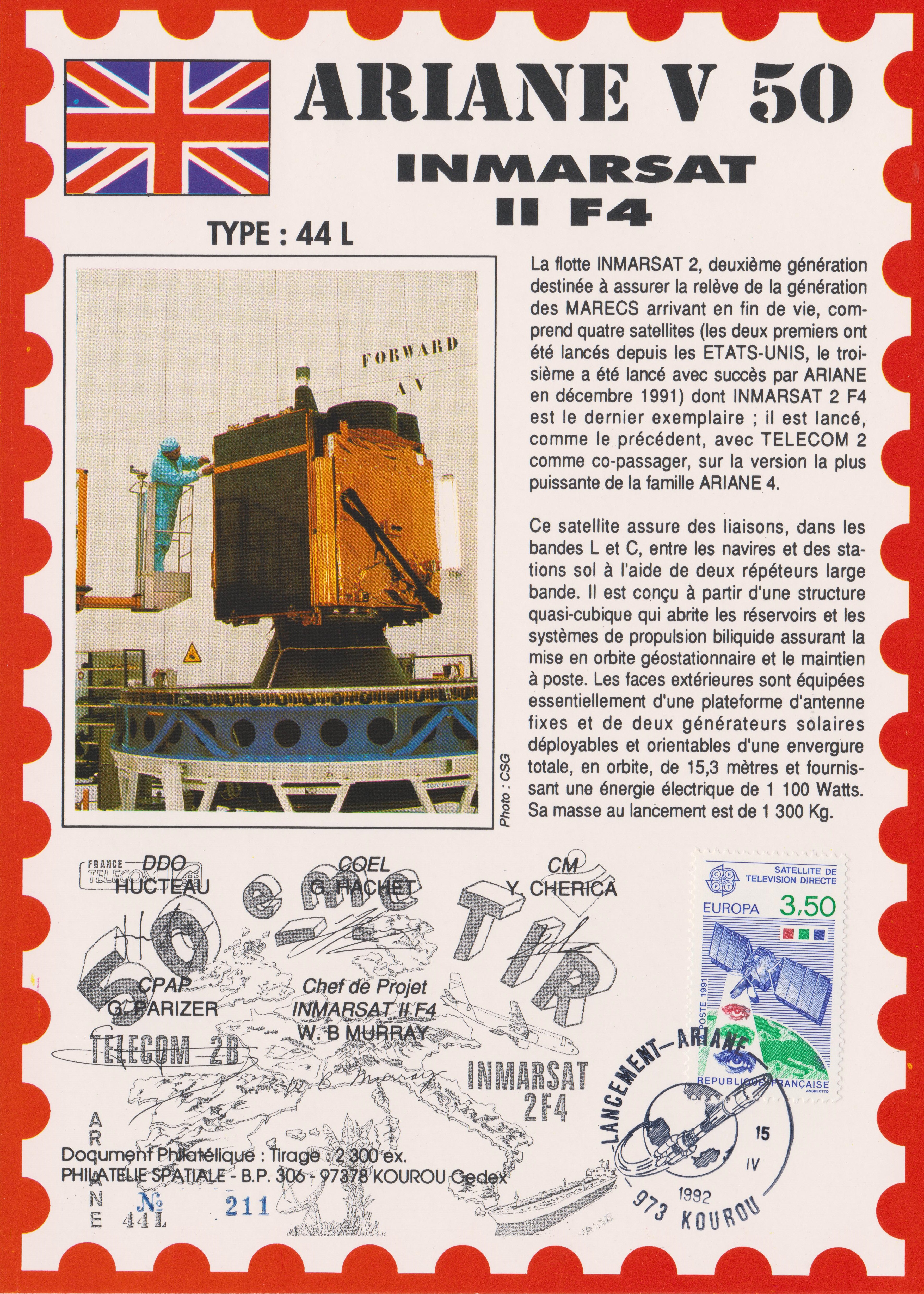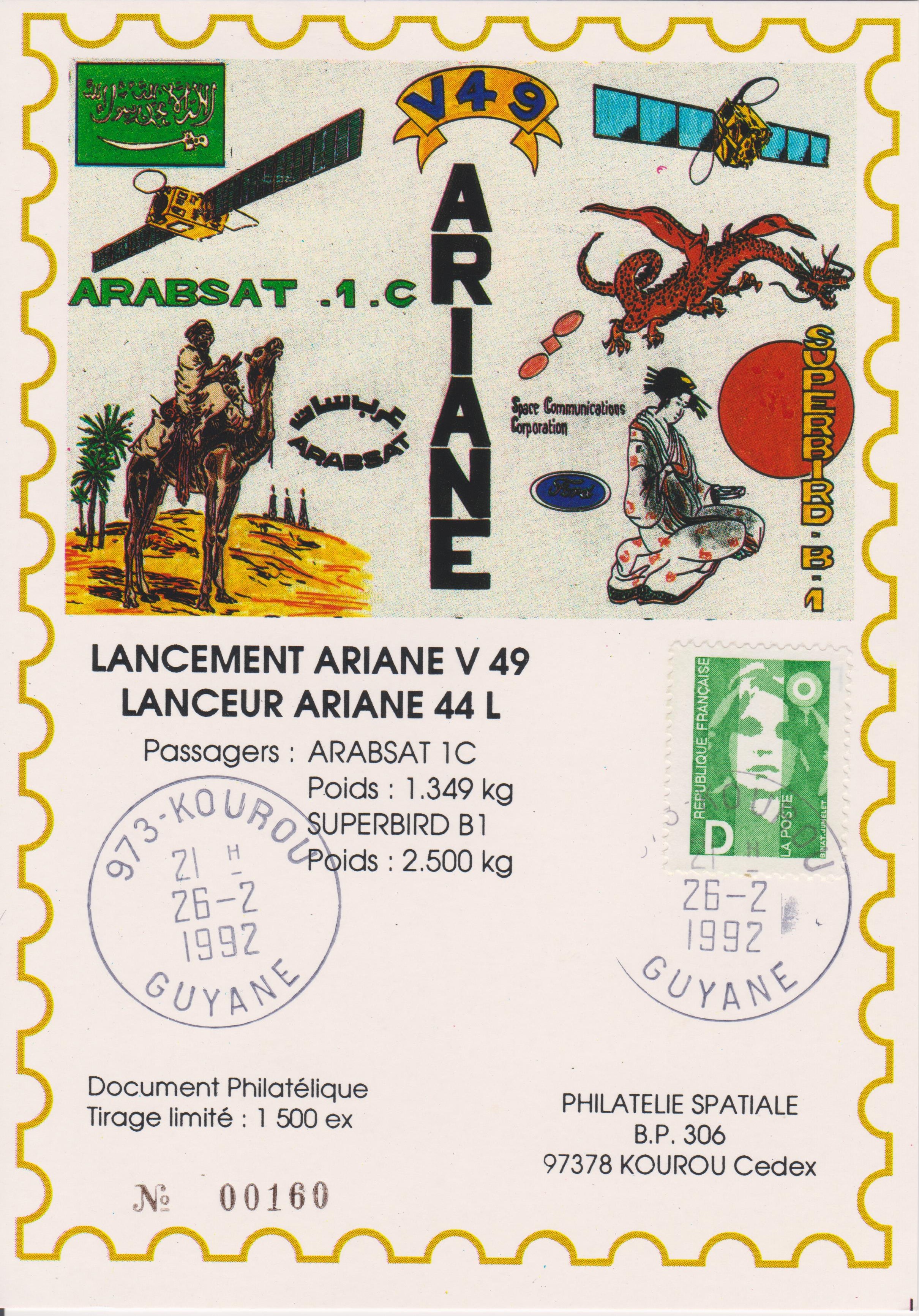 Zum 50. Start einer ARIANE wurde in einer nummerierten Auflage von 1500 Exemplaren dieses Faltblatt aufgelegt, dem man die Informationen zu den ersten 50 ARIANE-Starts entnehmen kann: