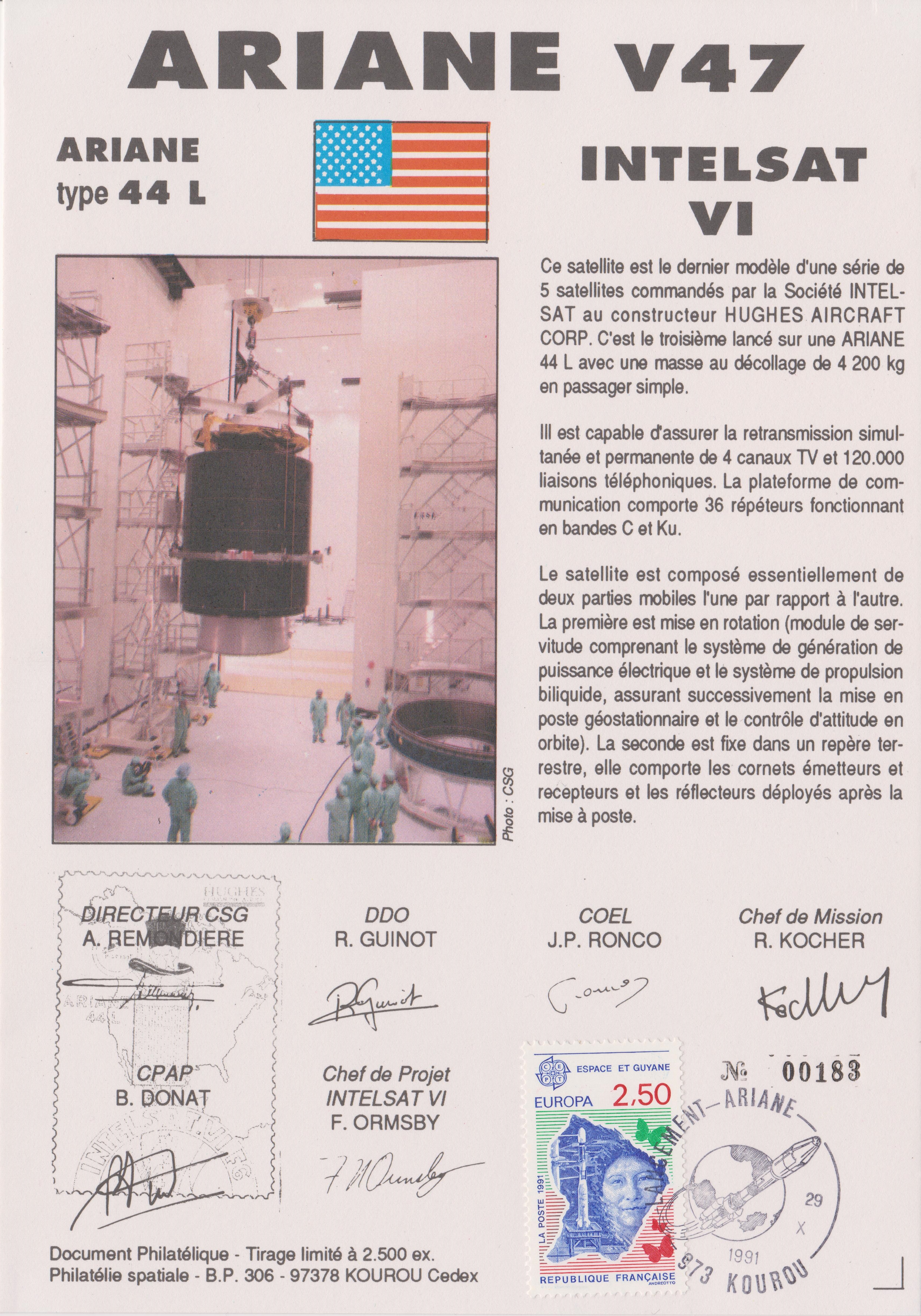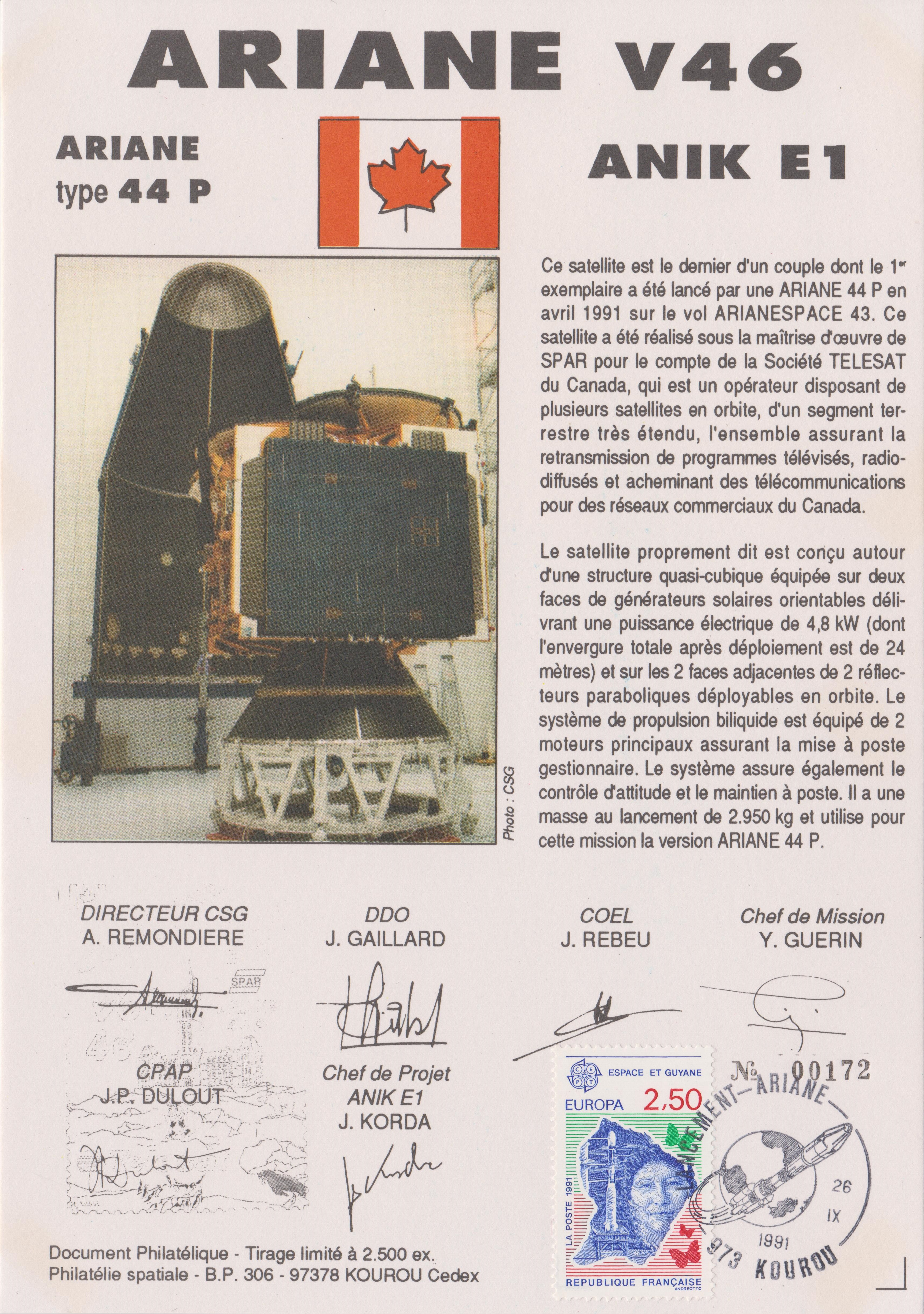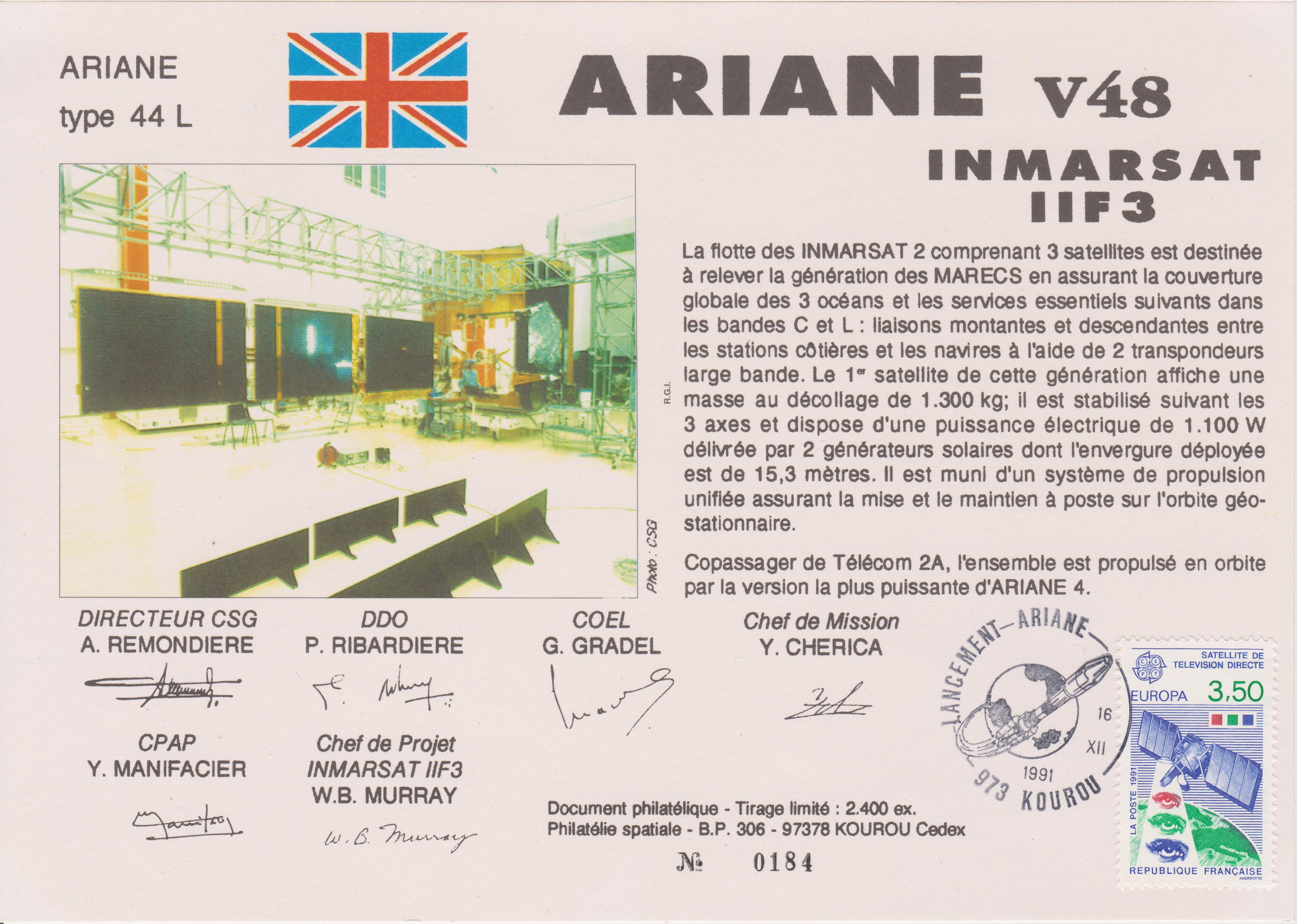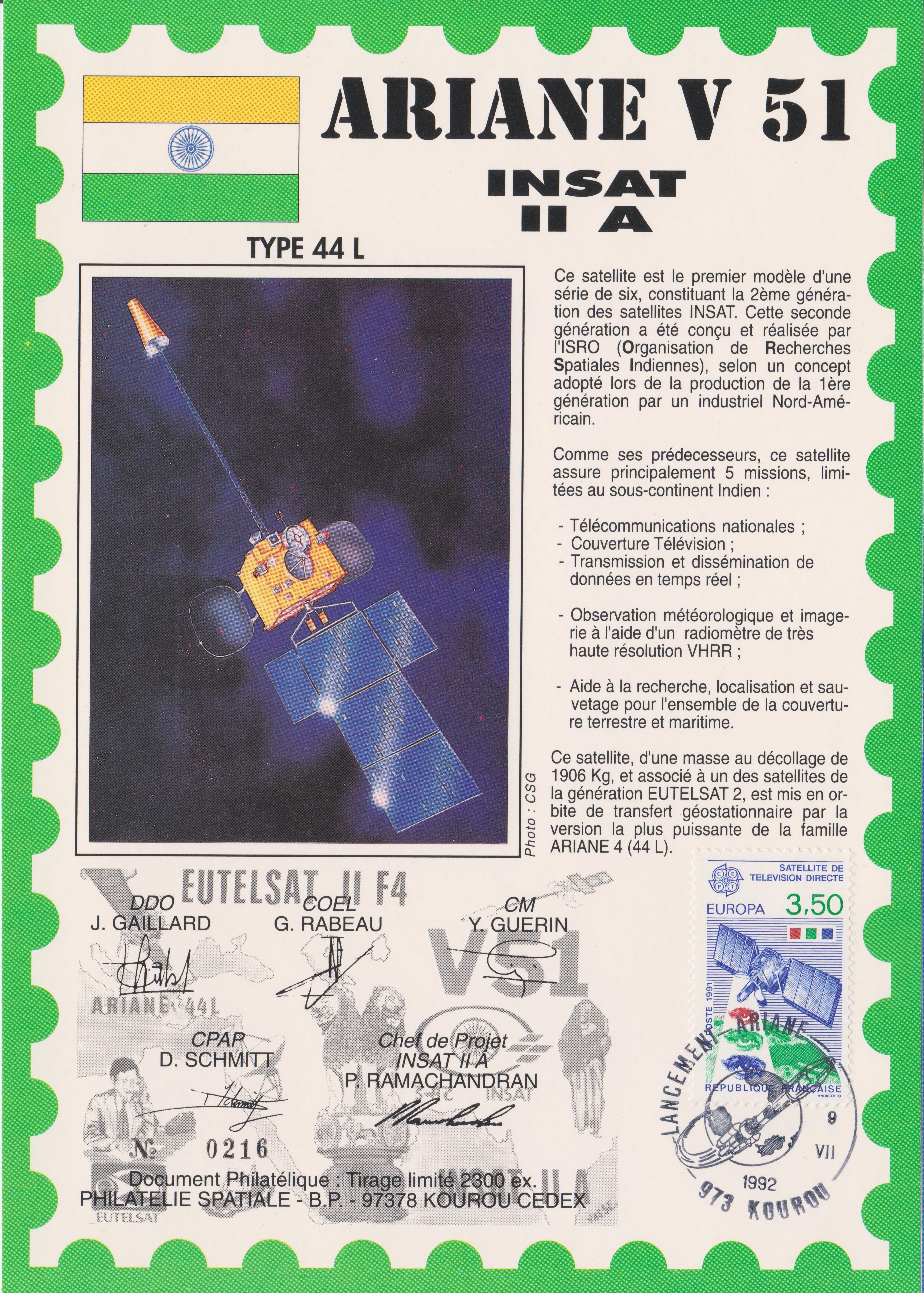 Zum 50. Start einer ARIANE wurde in einer nummerierten Auflage von 1500 Exemplaren dieses Faltblatt aufgelegt, dem man die Informationen zu den ersten 50 ARIANE-Starts entnehmen kann: