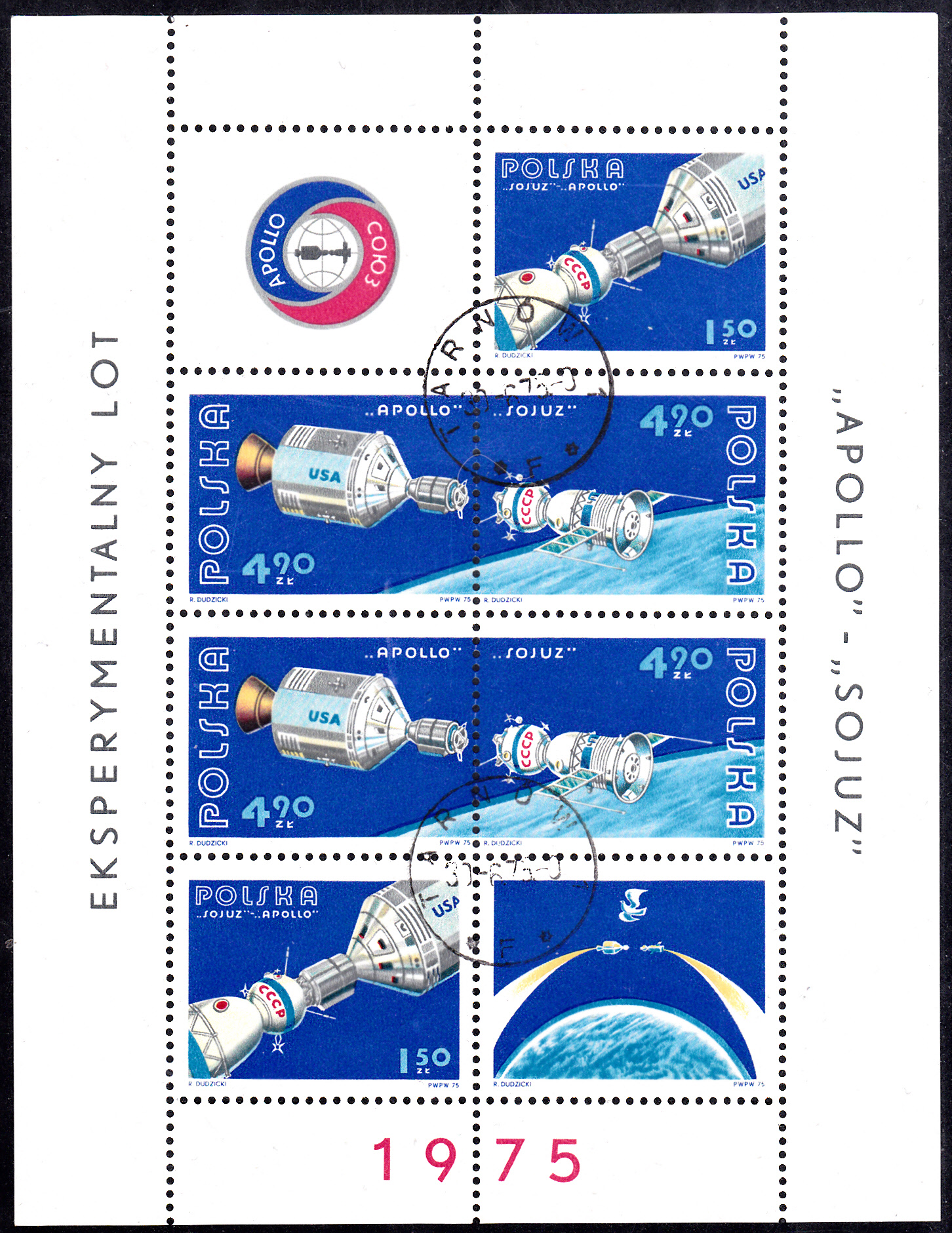 Ergänzend zu dem bereits hier gezeigten Zusammendruck aus Polen folgt heute auch noch die zur gleichen Ausgabe gehörende Einzelmarke (MiNr 2386) die Apollo mit Sojus gekoppelt zeigt.