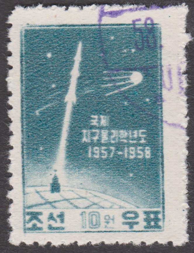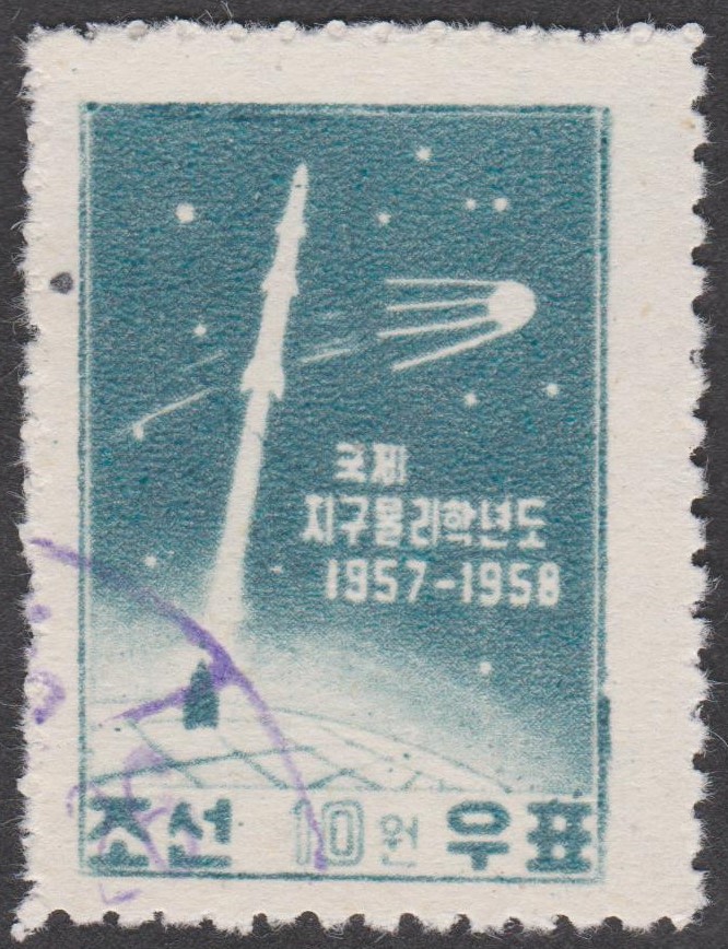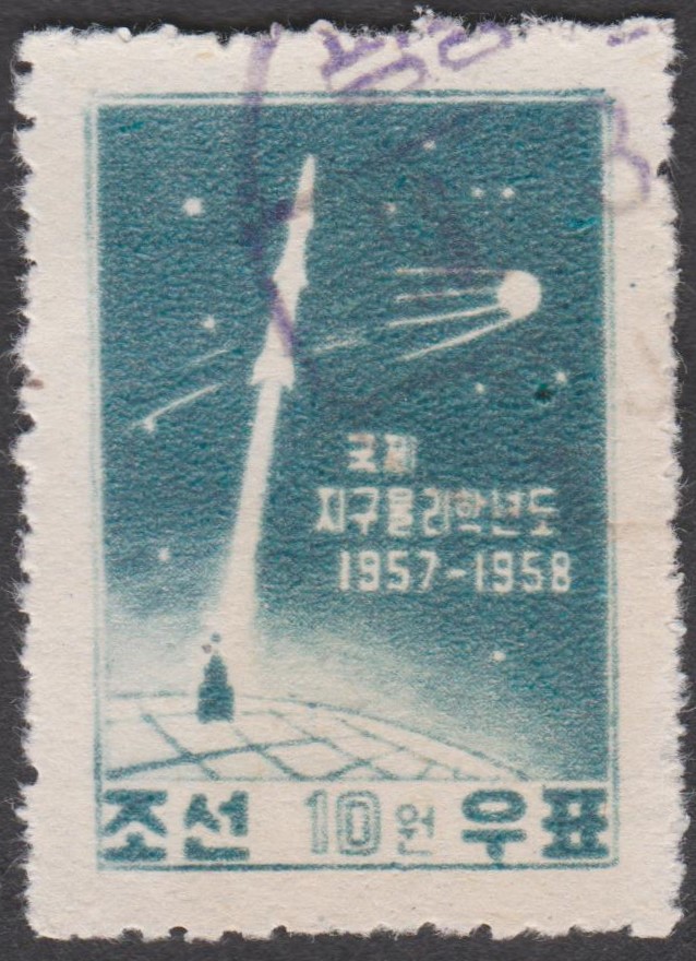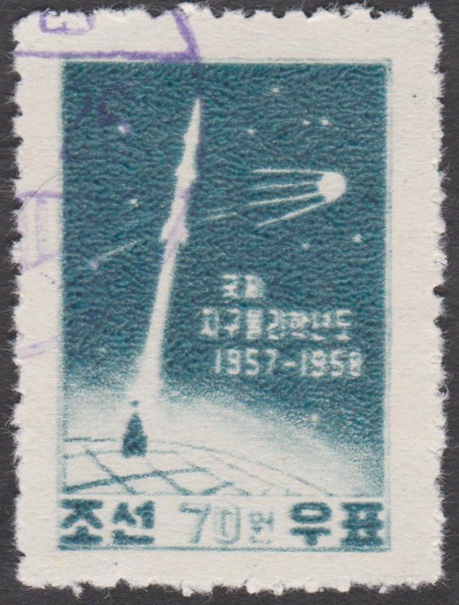 Diese Marke der Serie (MiNr 2210) zeigt die Marke zum Start von Sputnik 1 aus Nord-Korea MiNr. 141.
