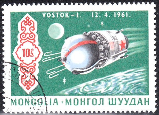 In einer Serie "Geschichte der Raumfahrt" erschien in der Mongolei auch eine Marke (MiNr 571), die Wostok 1 abbildet.