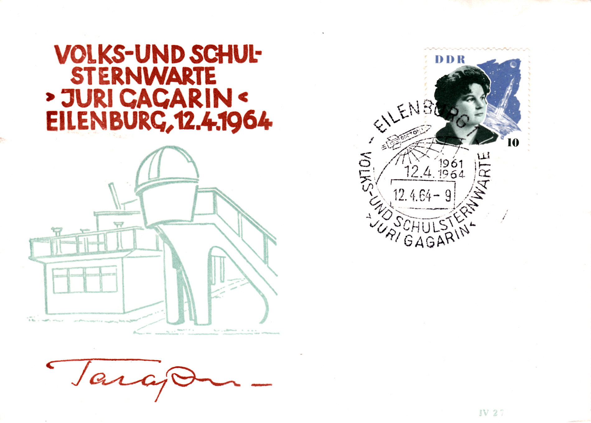 Sonderstempel aus Eilenburg vom 12.4.1964 zum 3. Jahrestag des Starts von Wostok 1.