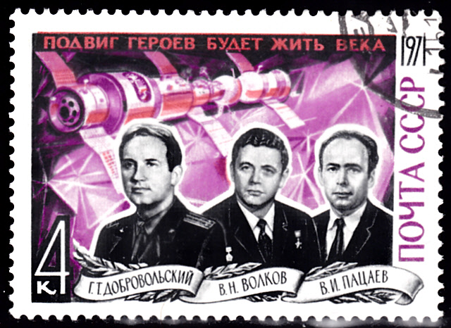 In der Sowjetunion ist am 20.10.1971 auch eine Marke (MiNr 3937) mit den verunglückten Kosmonauten der Sojus-11-Mission erschienen., Die Marke zeigt Porträts der Kosmonauten Georgij Dobrowolski, Wladislaw Wolkow und Wiktor Pazajew (1933-1971) und den Orbitalkomplex Saljut 1 - Sojus 11.