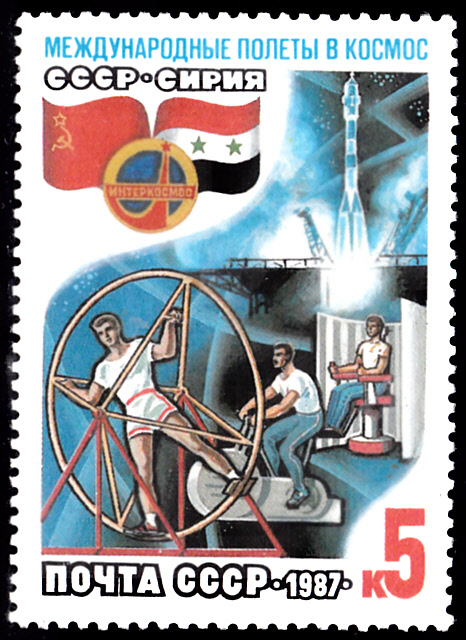 Zum Gemeinsamen Weltraumflug UdSSR-Syrien ist in der Sowjetunion eine Markenserie erschienen. Auf der ersten Marke (MiNr 5737) werden das Kosmonauten-Trainingszentrum und eine startende Rakete gezeigt.