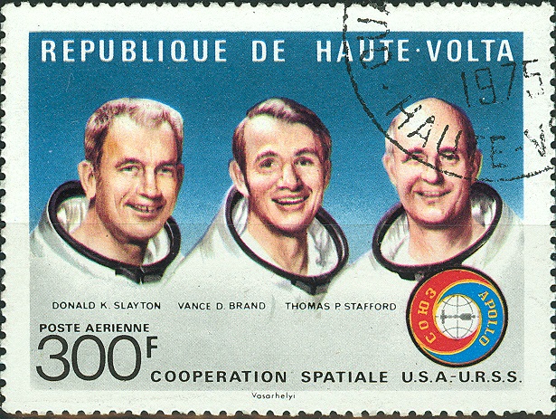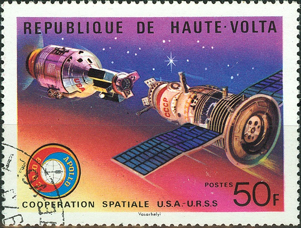 Ein APOLLO- und ein SOJUS-Raumschiff koppelten am 17.07.1975 in der Erdumlaufbahn aneinander an, so dass die Raumfahrer von einem Raumschiff ins andere umsteigen konnten.