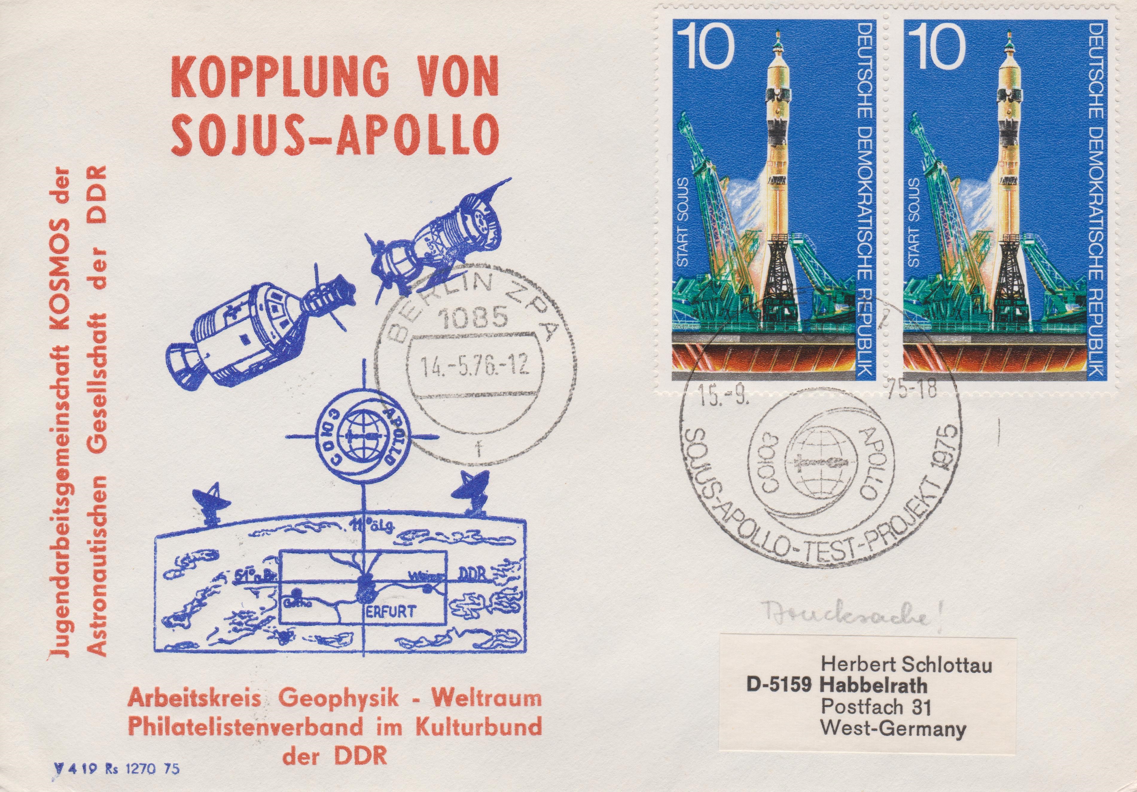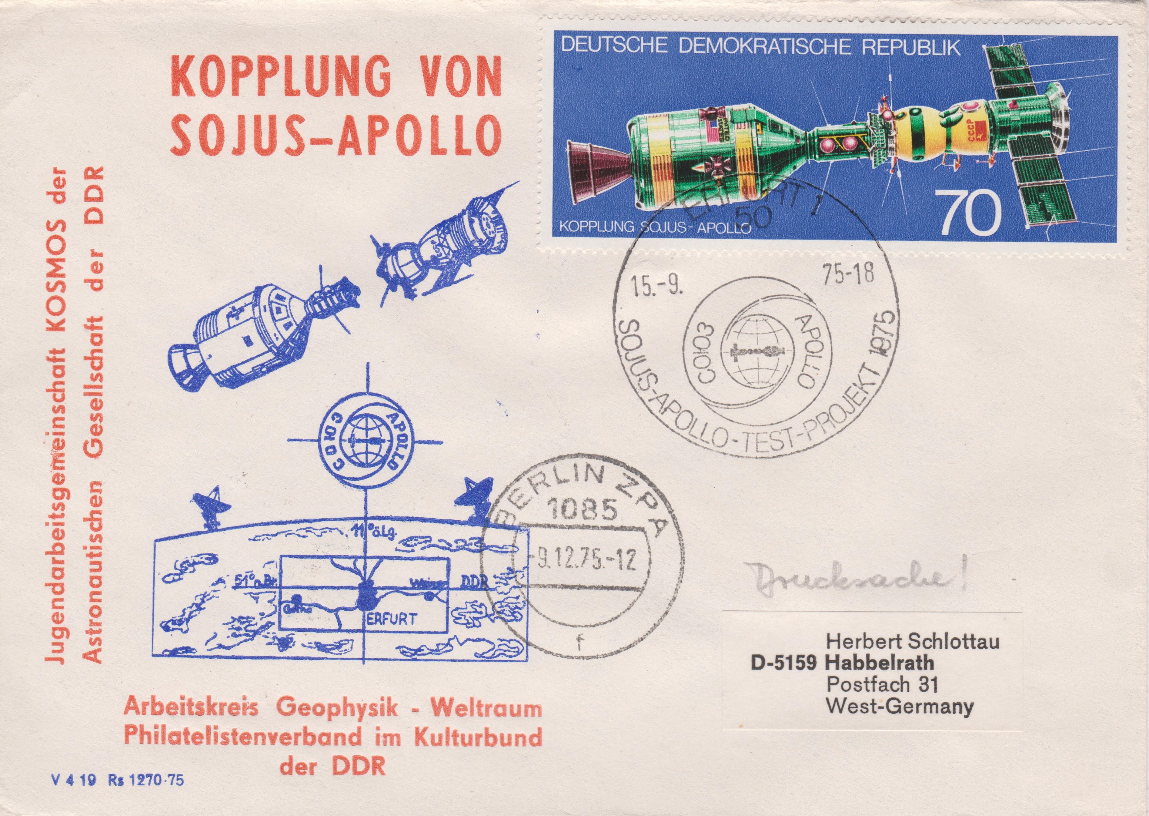 In der DDR erschien am 15.09.1975 als MiNr. 2085 eine Sondermarke mit der Darstellung des erfolgreichen Kopplungsmanövers: