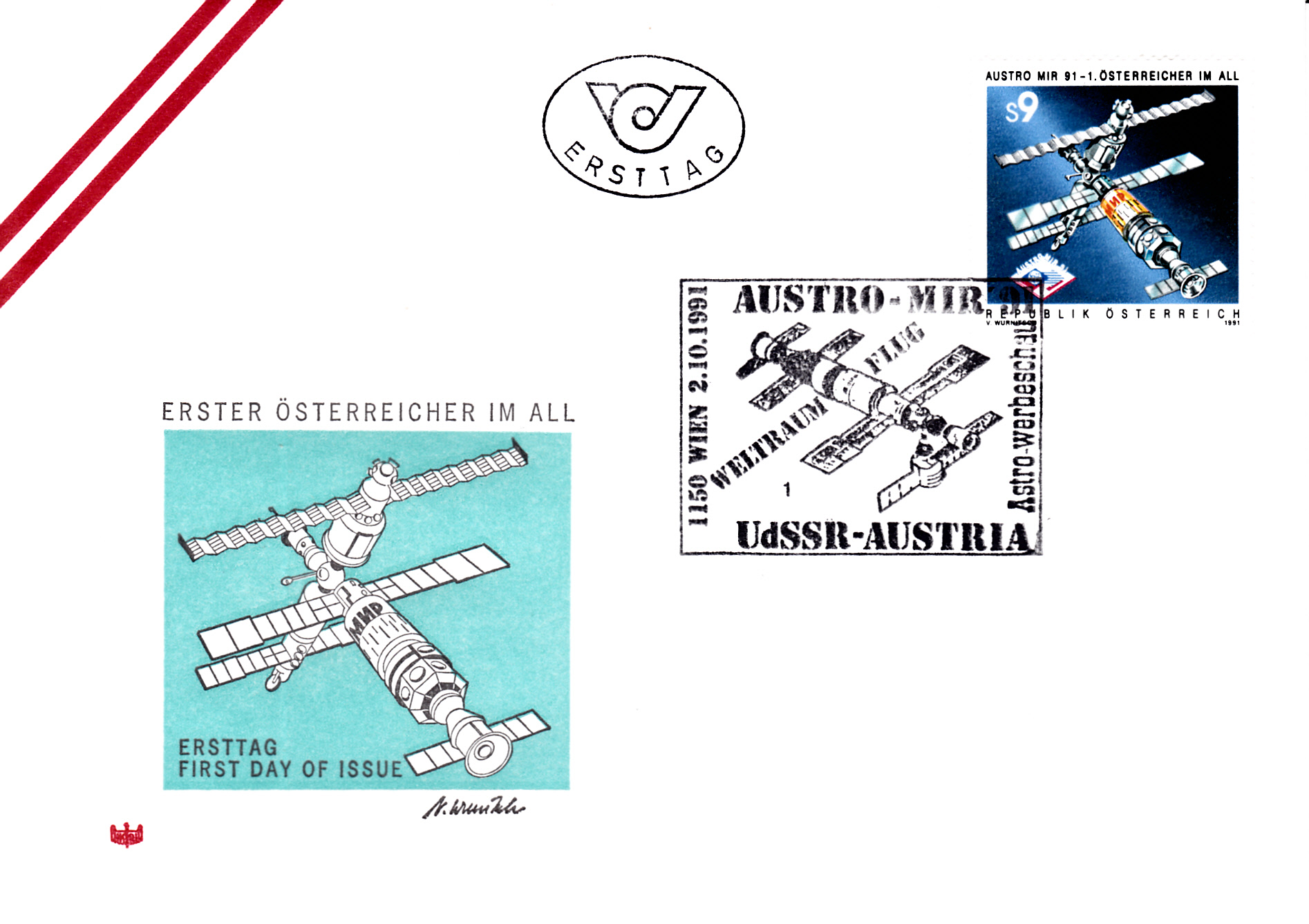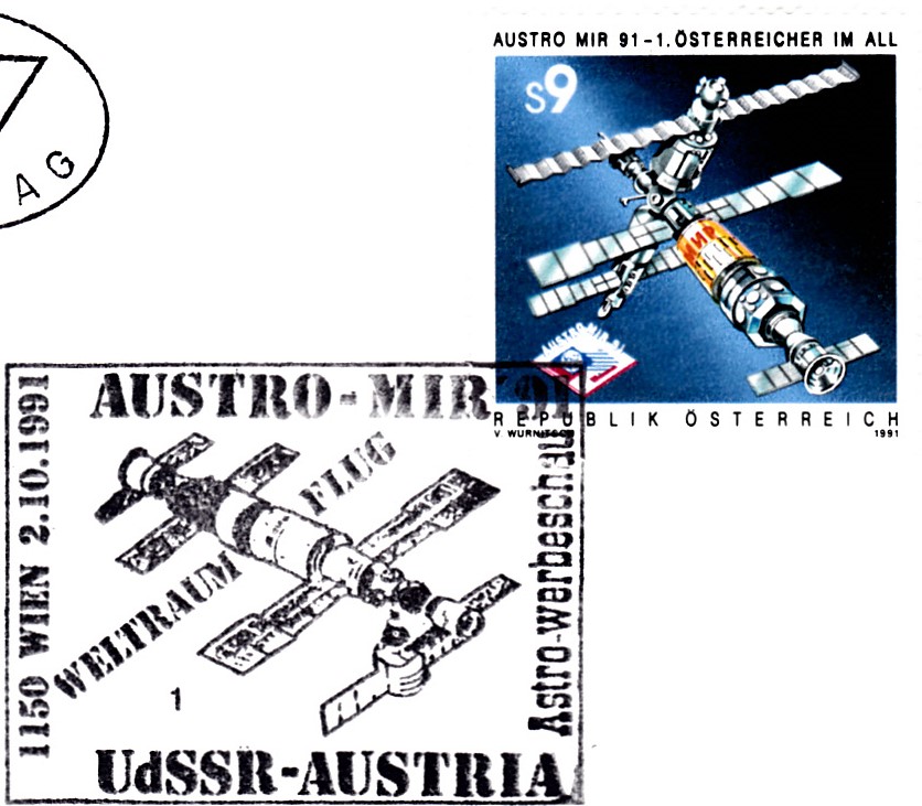 Zum Sowjetisch-Österreichisches Raumfahrtprojekt AUSTROMIR ’91 und dem ersten Österreicher im Weltall wurde in Österreich eine Marke (MiNr 2040) verausgabt. Die Marke zeigt die Raumstation MIR im Markenbild.