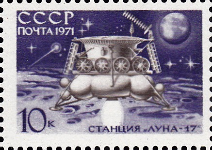In der Sowjetunion erschien 1971 diese Marke (MiNr 3857) mit der Abbildung der Landung von Luna 17 auf dem Mond.