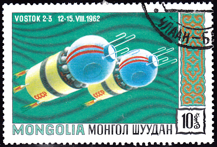 In einer Serie "Raumforschung" erschien in der Mongolei eine Marke (MiNr 618) mit einer Abbildung der Raumschiff Wostok 3 und Wostok 4 beim Gruppenflug. Die Beschriftung auf der Marke ist offensichtlich falsch (Vostok 2(!) - 3, das Datum weist aber auf Wostok 3+4 hin)