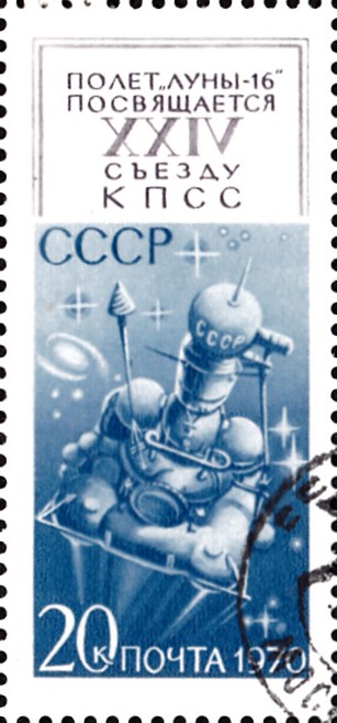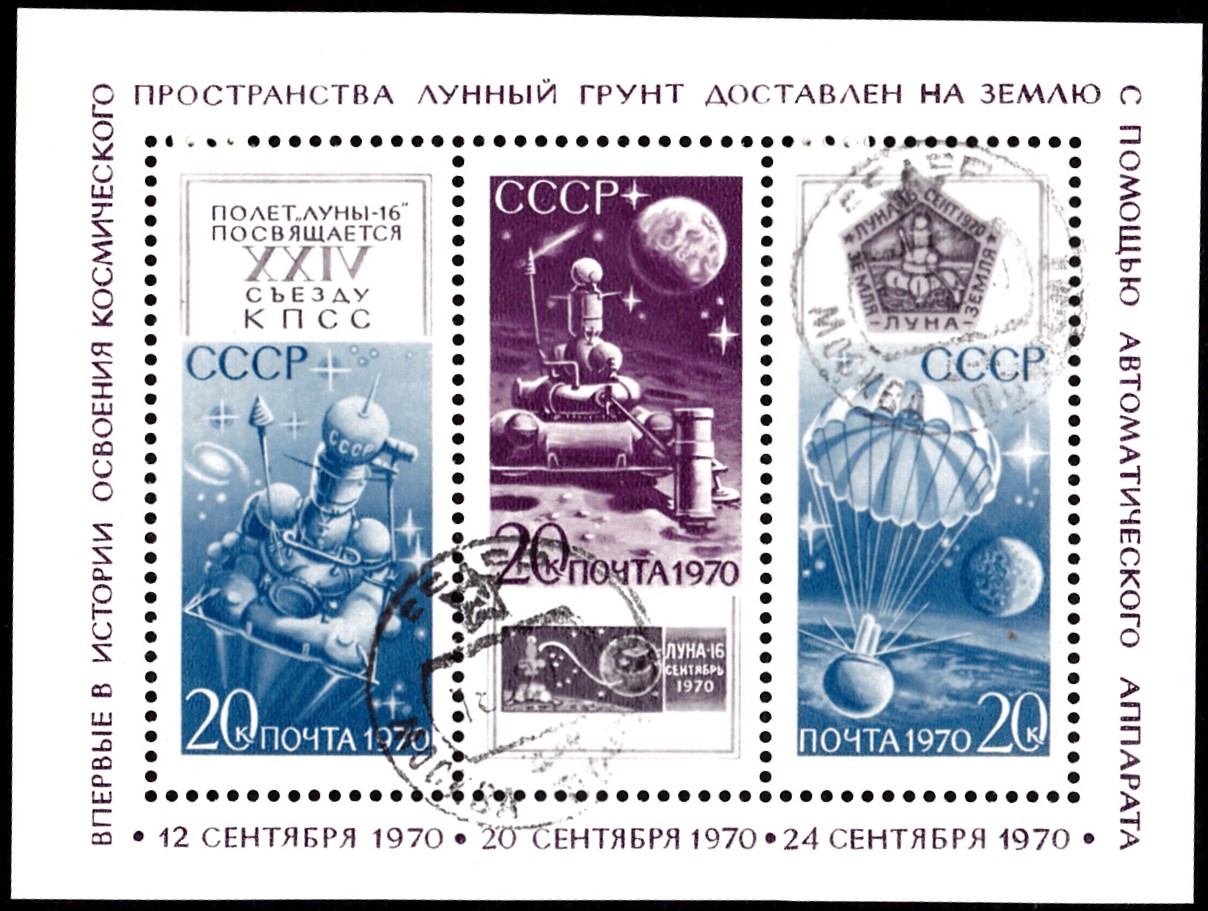In der Sowjetunion erschien in einer Blockausgabe zur Mission von Luna 16 diese Marke (MiNr 3827) mit Luna 16 im Flug.