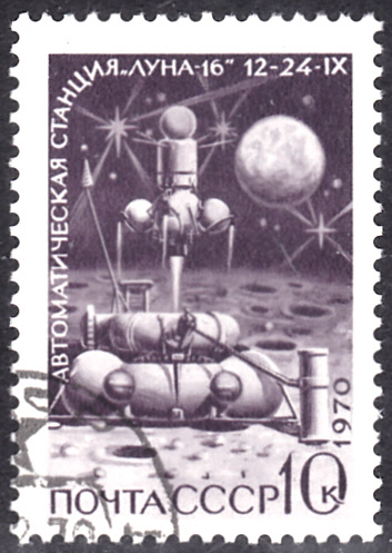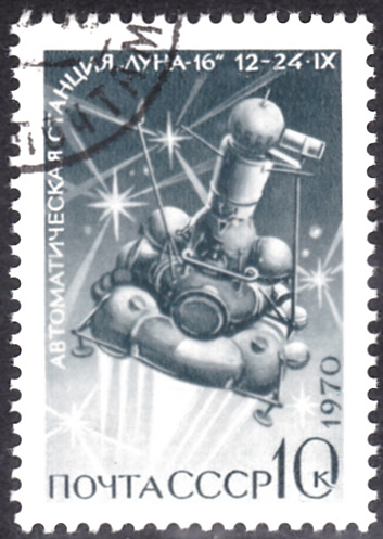 Auf dieser Marke der DDR (MiNr 1638) ist auch Luna 16 zu sehen.