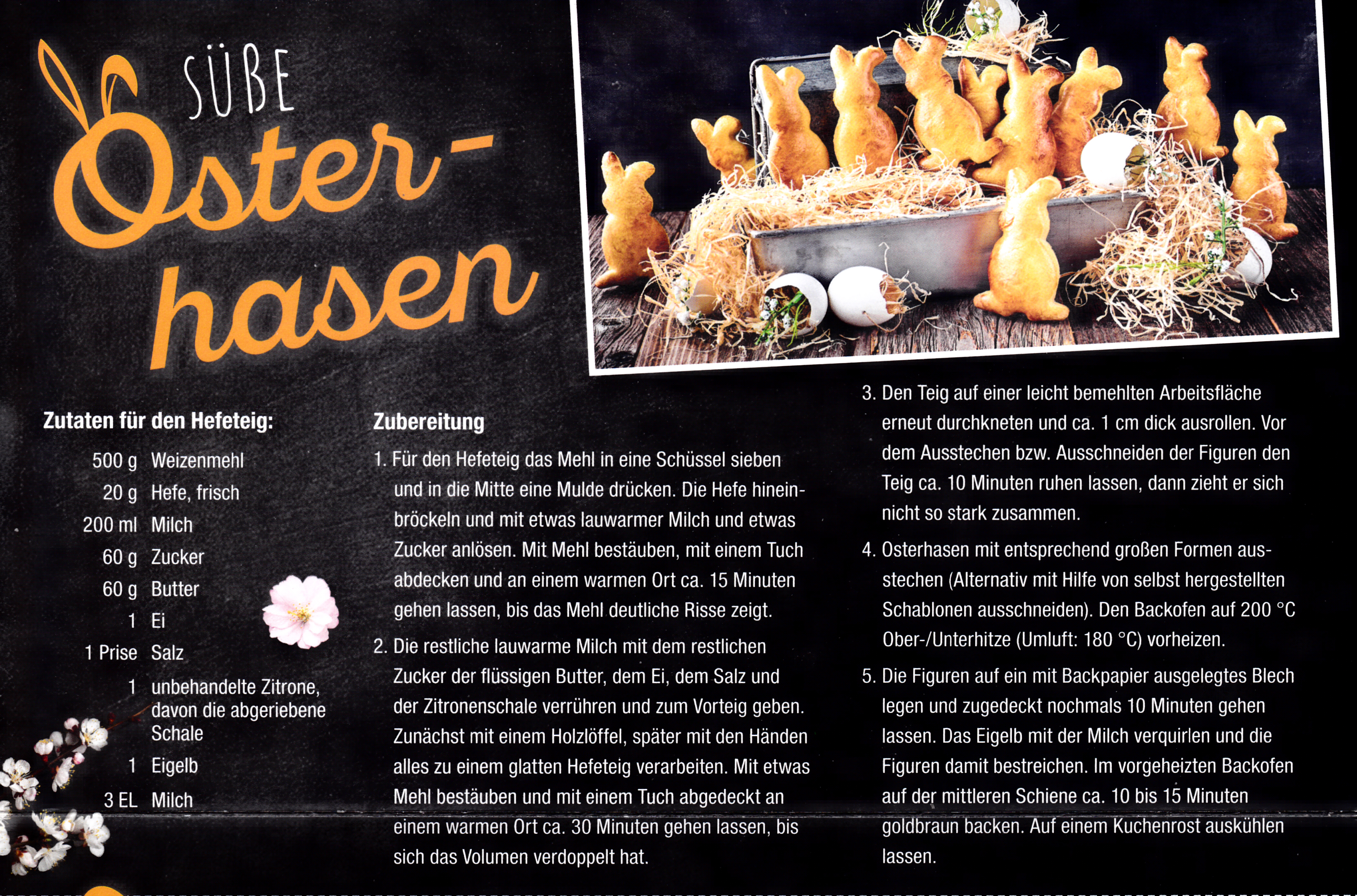 Hier ist auch das Rezept für die Hasen, das im aufgeklappten Faltblatt zu lesen ist: