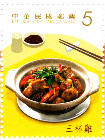 Sanbeiji (Chinesisch: 三杯雞, siehe Marke) ist ein beliebtes Gericht mit Huhn in der chinesischen Küche und besonders beliebt auf Taiwan. Auf der dritten Marke (MiNr 3772) des Zusammendruckes aus China-Taiwan ist eine Abbildung dieses traditionellen Gerichtes zu sehen.