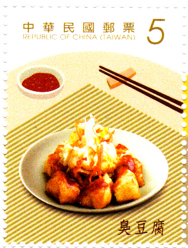 In China Taiwan erschien am 16.8.2013 eine weitere Serie von vier Marken mit "Traditionellen Gerichten" im Zusammendruck. Die erste Marke (MiNr 3821) zeigt das Gericht "stinkender Tofu".