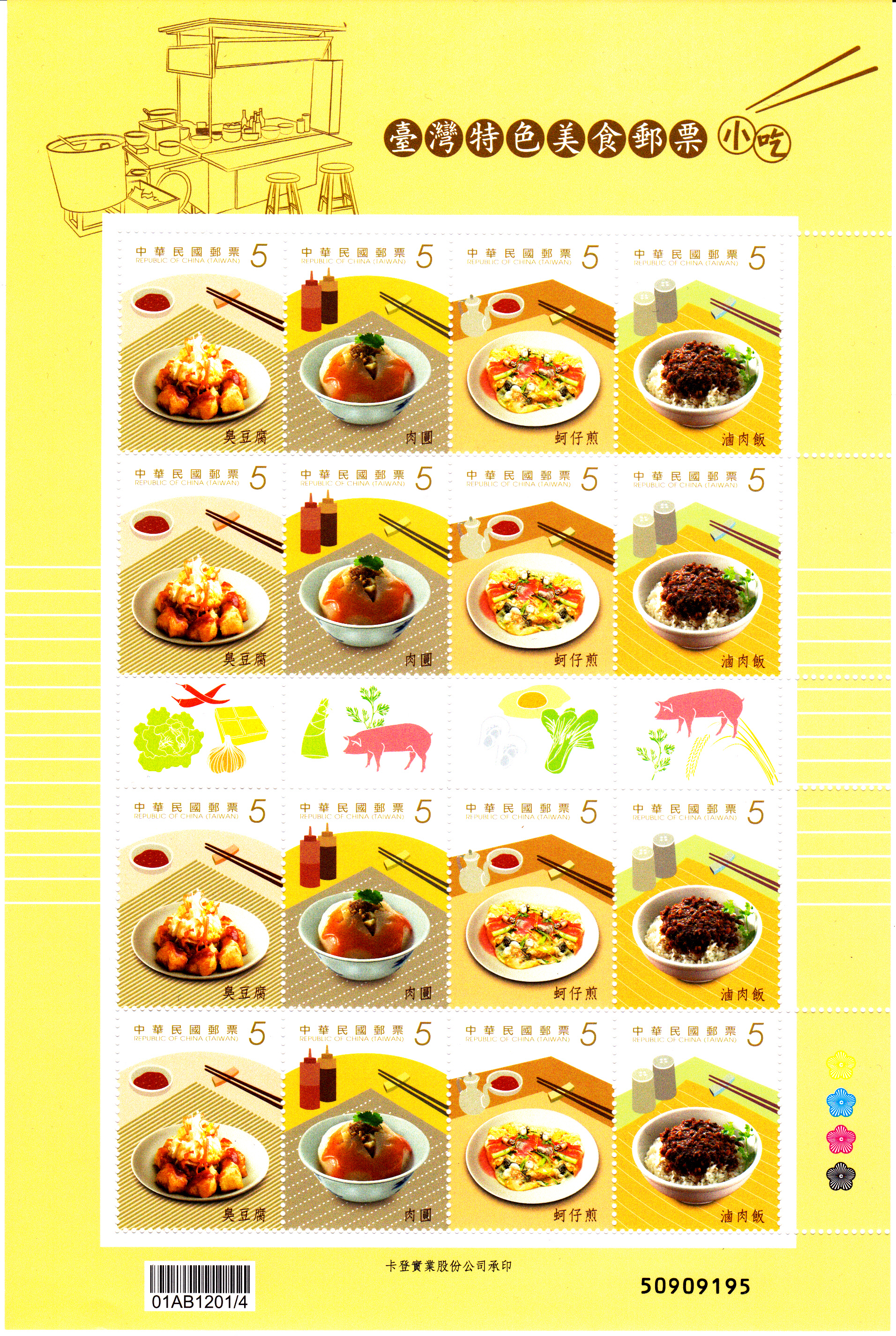 In China-Taiwan erschien am 31.1.2013 eine Serie aus vier Werten mit "Traditionellen Gerichten" als Zusammendruck.