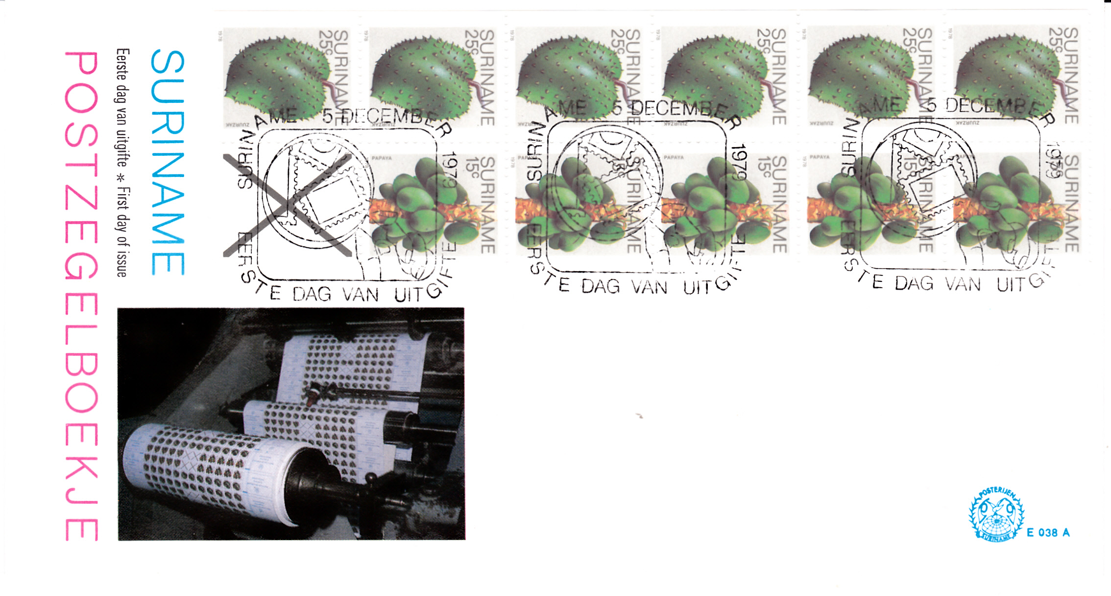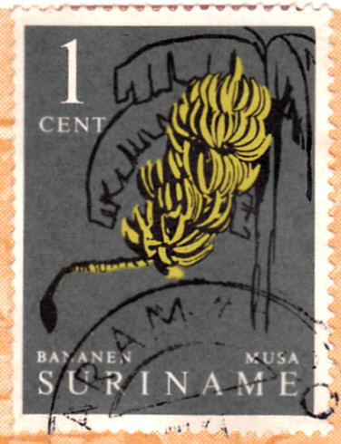 Die auf der vorhergehenden Seite gezeigten Marken aus Surinam gibt es auch bis auf die Marke mit den Bananen teilgezähnt aus Markenheftchen.